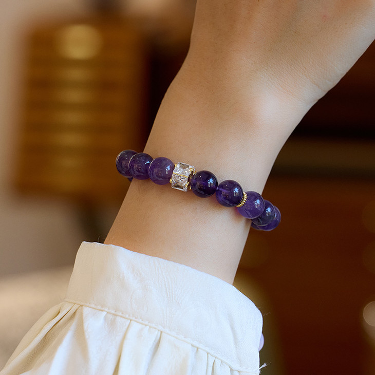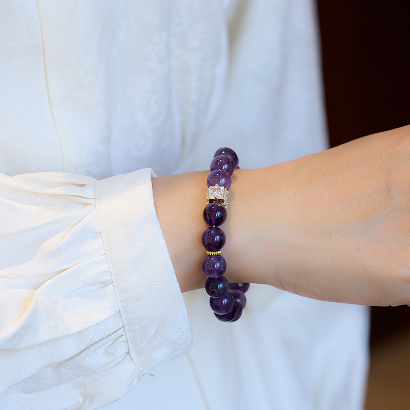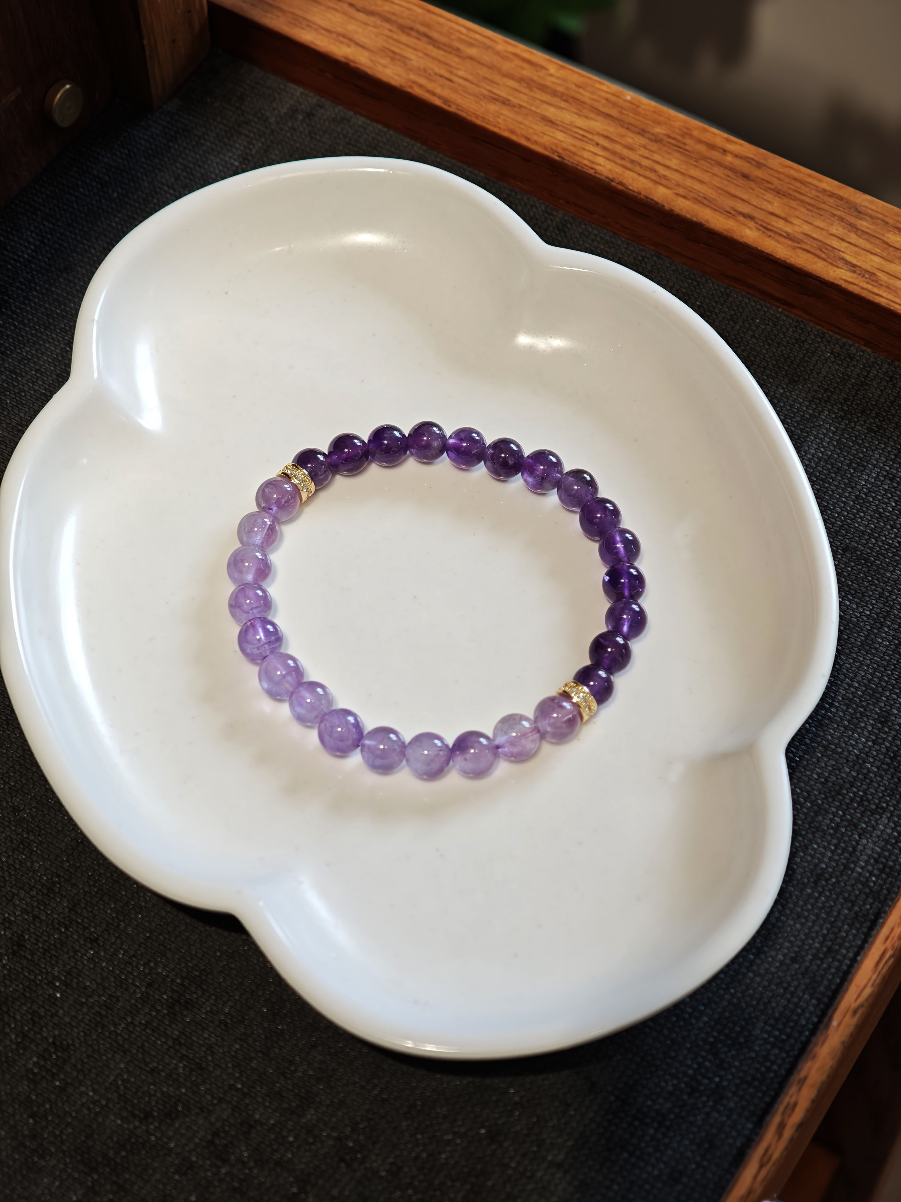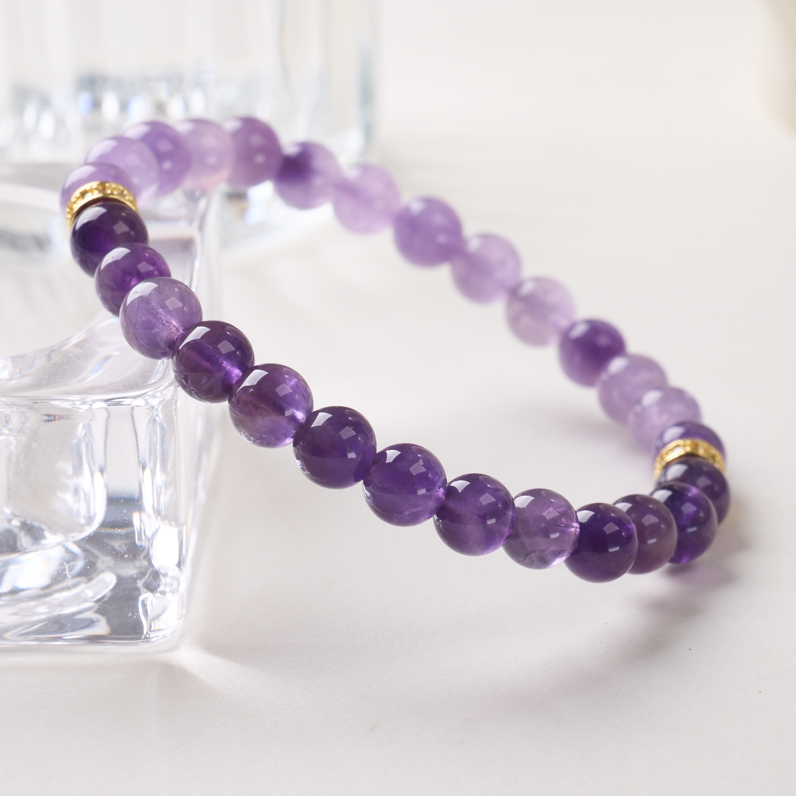 款式A:6mm薰衣草与葡萄紫的撞色款,特别适合纤细的手腕,一半温柔,一半热烈。