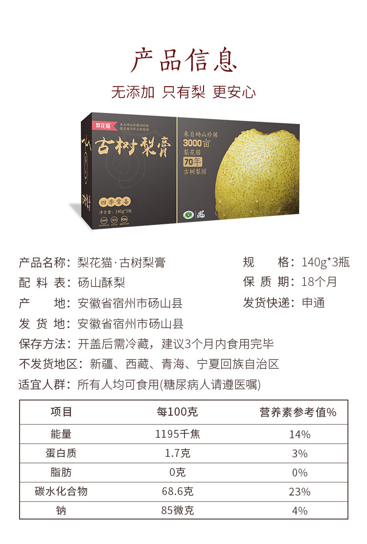 梨花猫 性别:女 籍贯:梨多宝独有的3000亩有机梨园,十万级无菌GMP药企生产车间 门派:超纯派 技能:力战雾霾,庇佑咽喉,格挡粉尘,舒缓咳嗽 武器:梨花盾,魔法袍 命中:润肺100