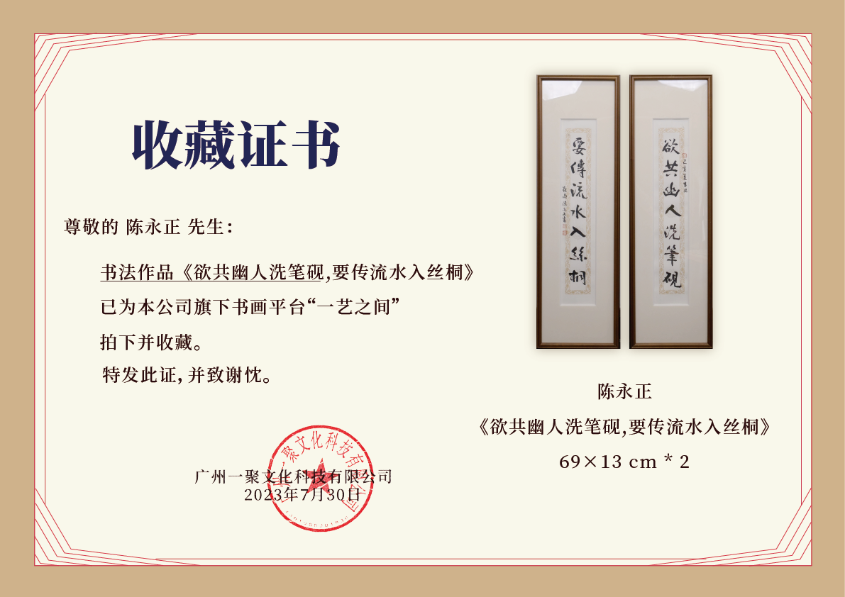 陈永正书法69x13CM《欲共幽人洗笔砚,要传流水入丝桐》1.6平尺手写纸本宣纸作品[原作编号:SF0508]
