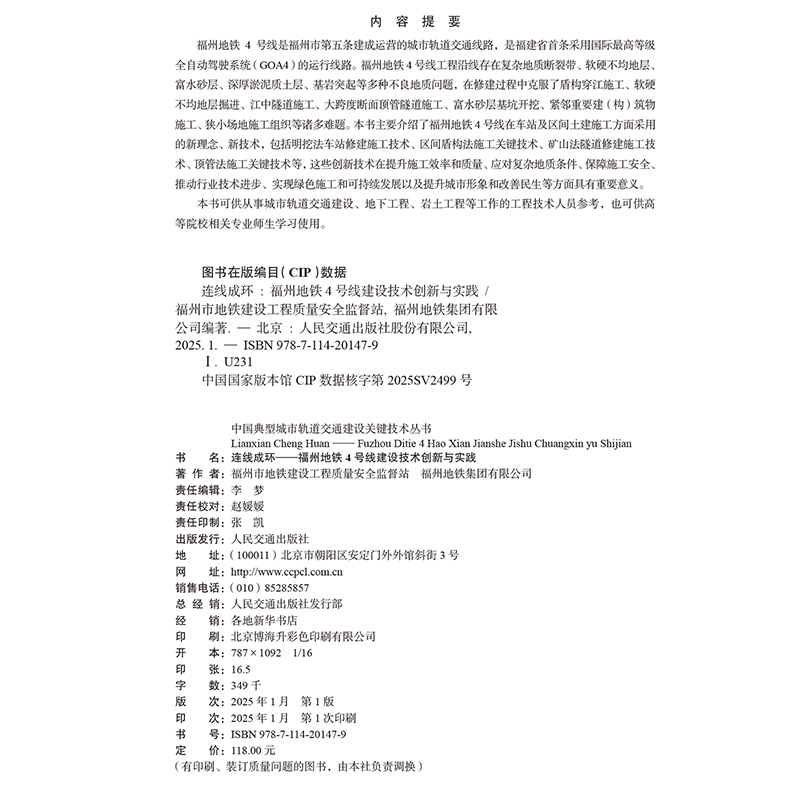 书名:连线成环——福州地铁4号线建设技术创新与实践