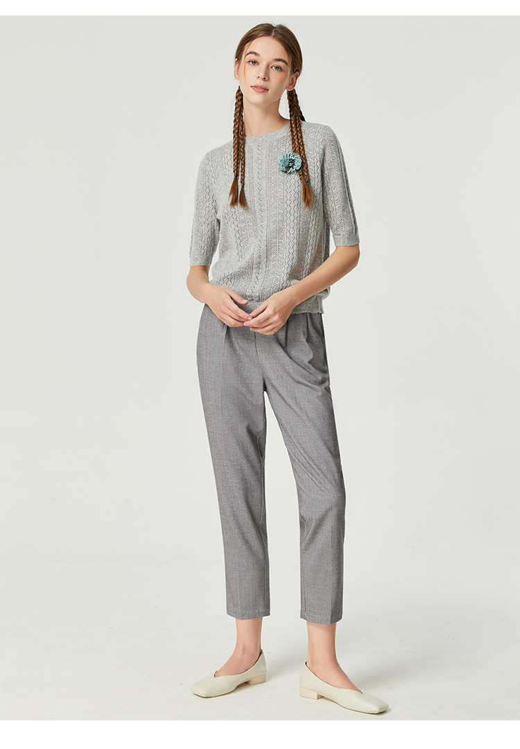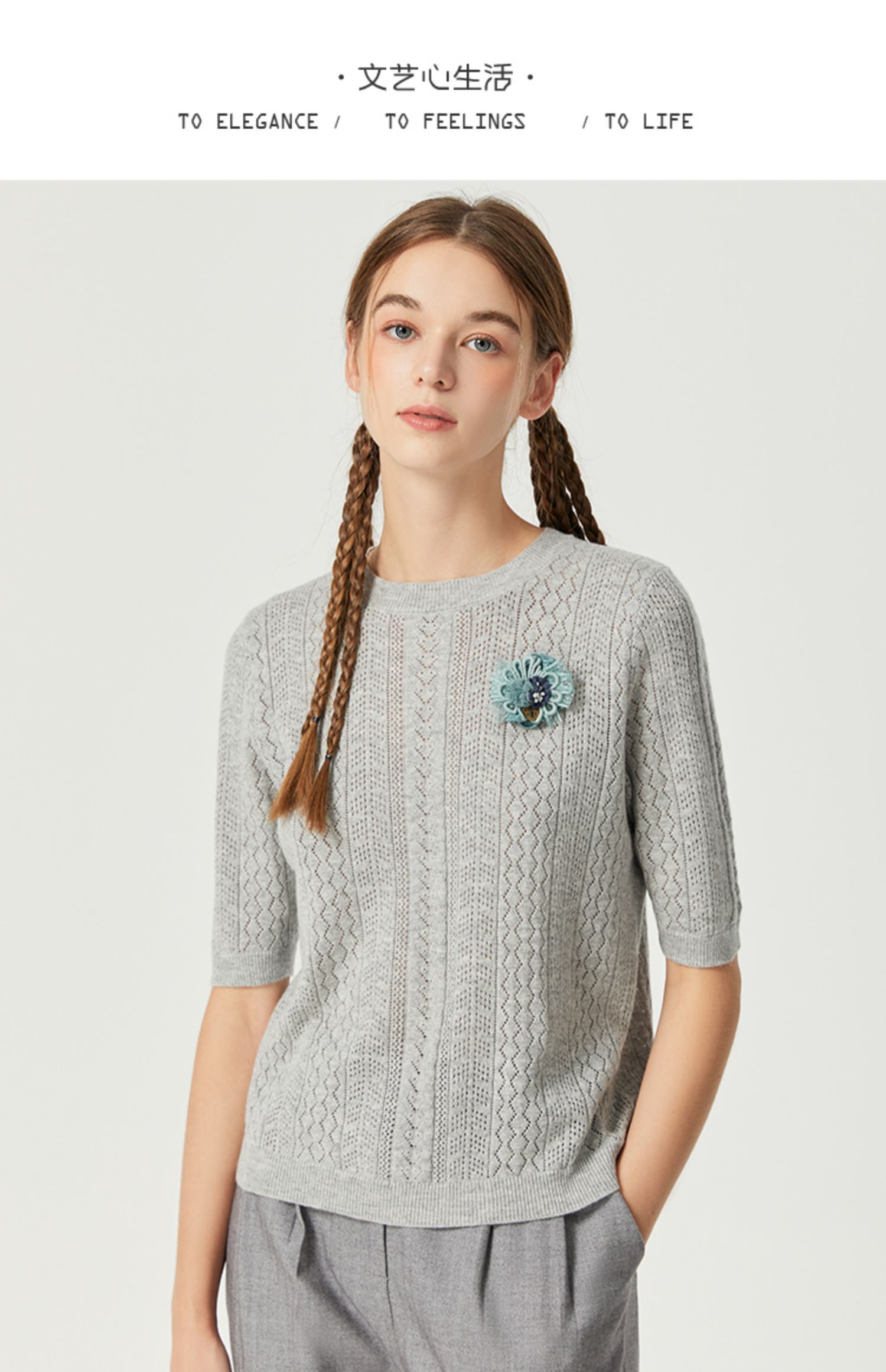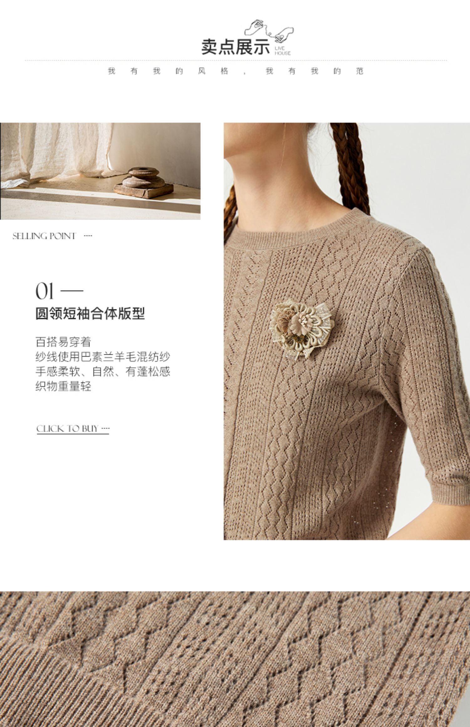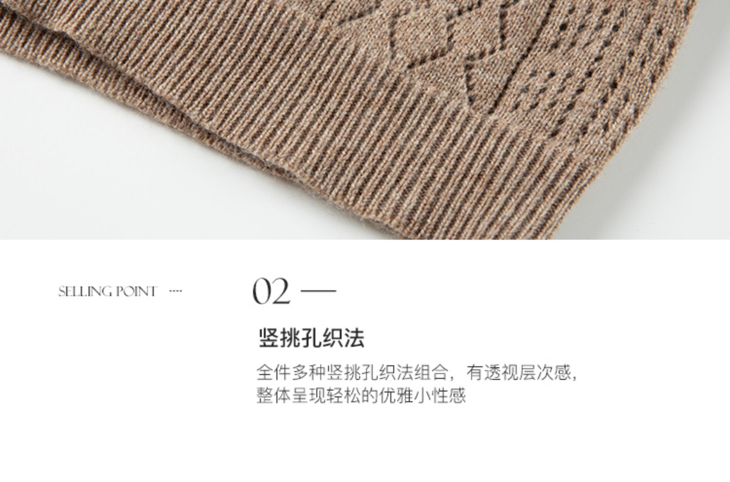 Famecoco范可儿卡其色镂空针织衫t恤秋羊毛微透上衣女宽松高级感F225DB002