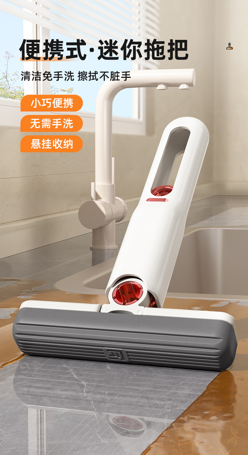 多功能桌面拖把迷你小拖把家用免手洗手持折蠡式厨卫夹缝吸水刮拖