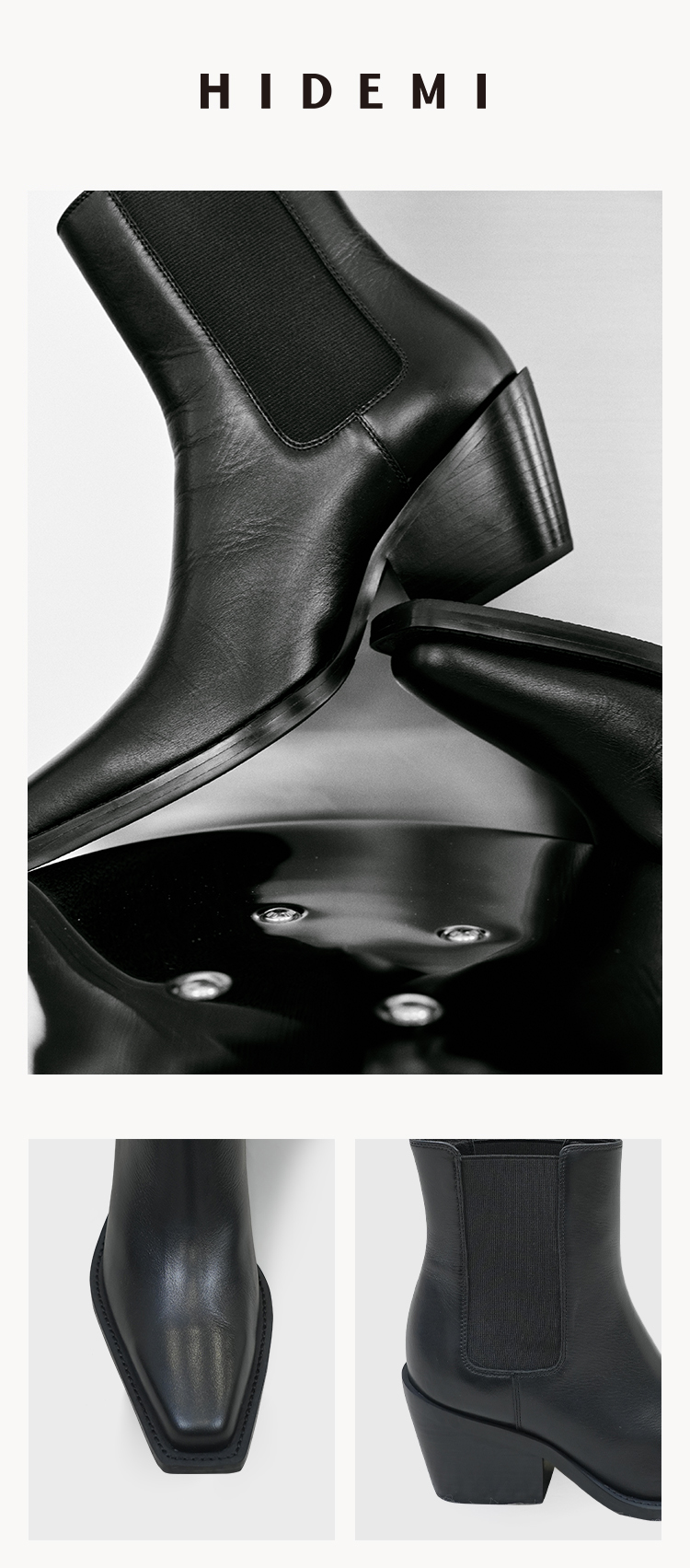 HIDEMI 经典厚底切尔西进口牛皮松紧带拼接骑士短靴踝靴