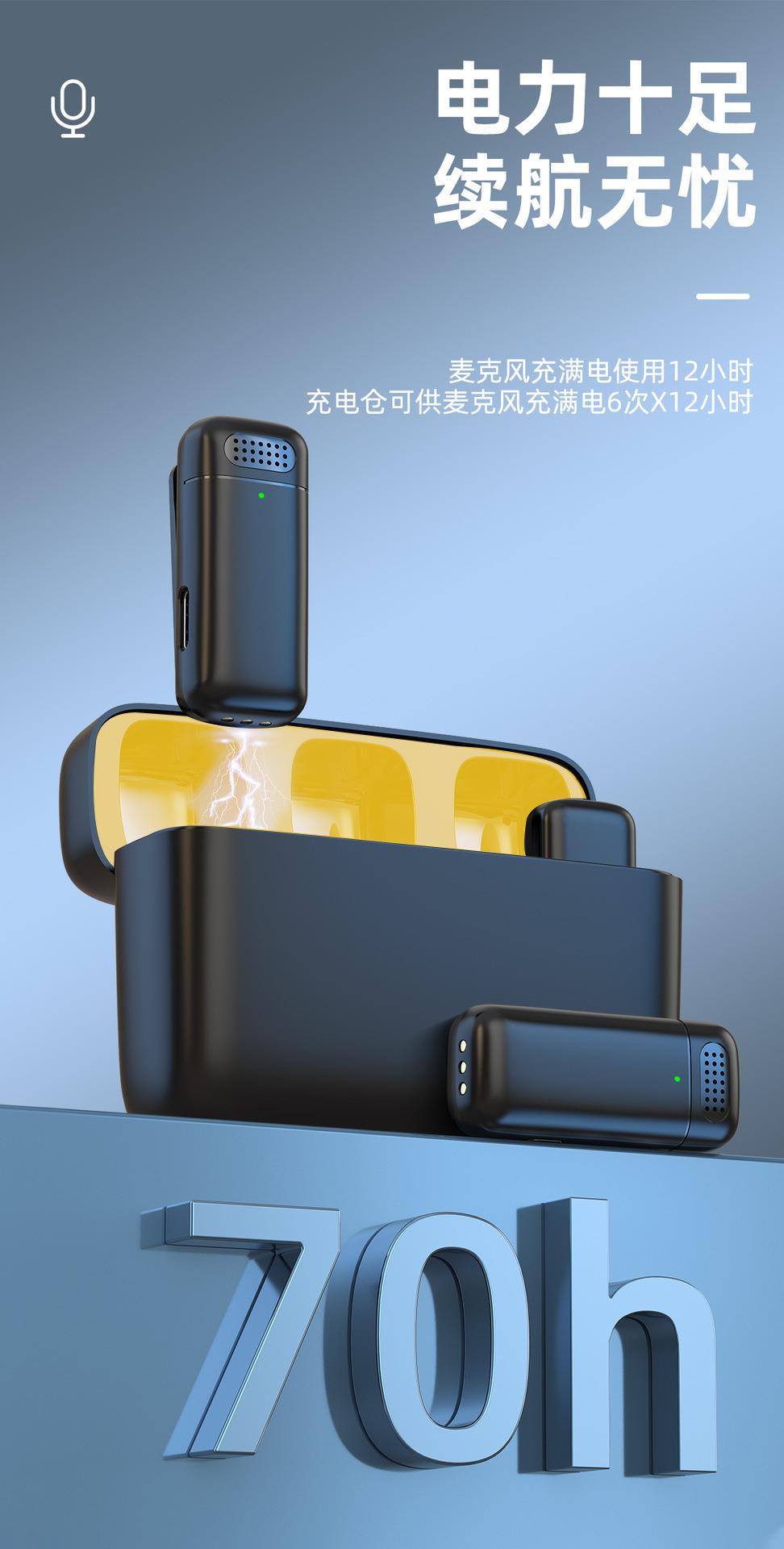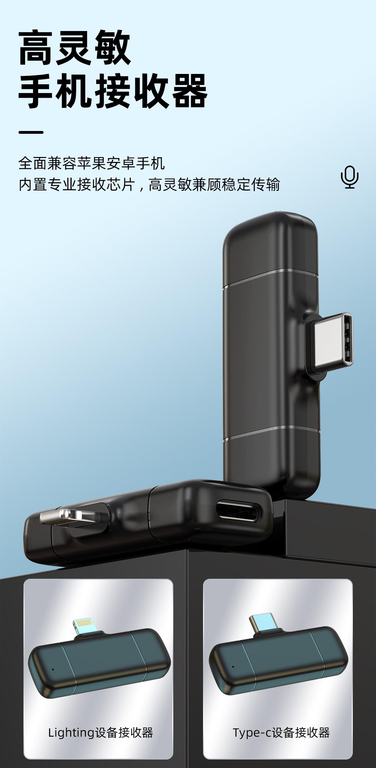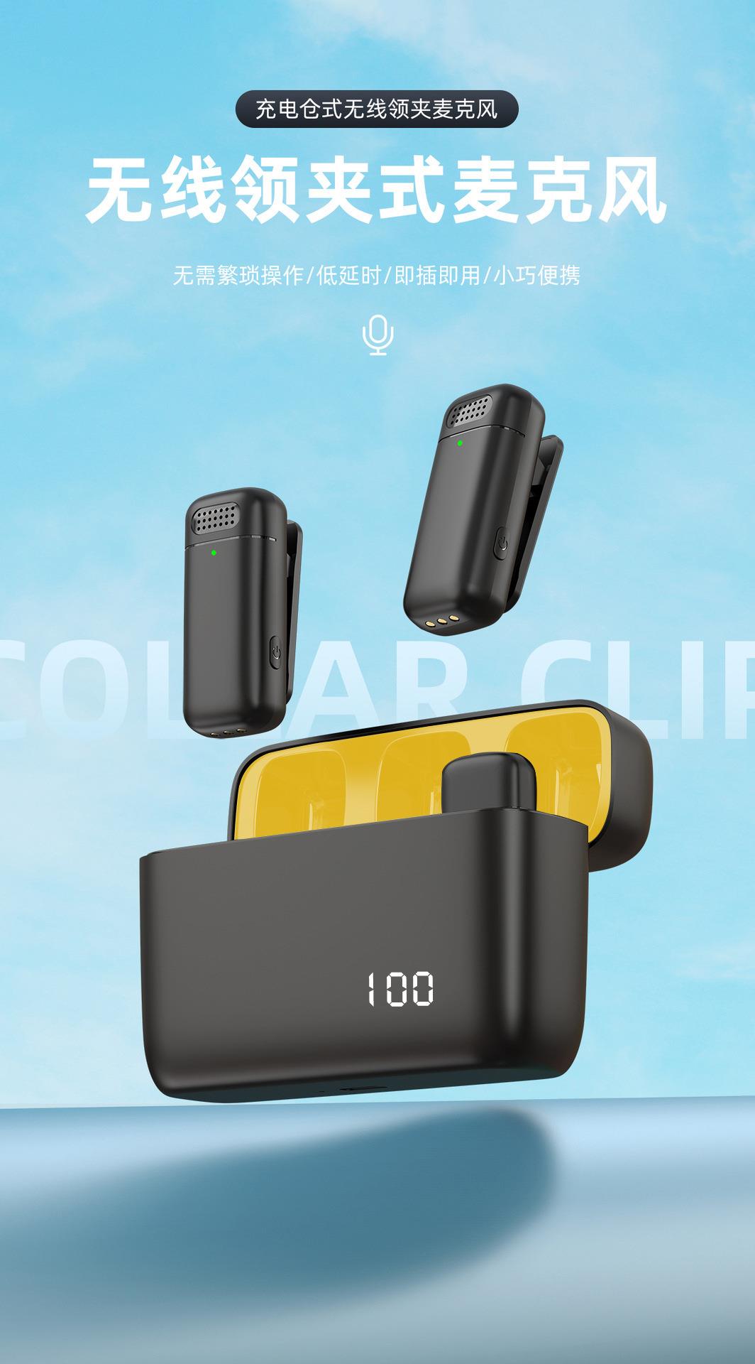 跨境一拖二蓝牙2.4GHz无线领夹式麦克风带充电仓收音降噪直播话筒
