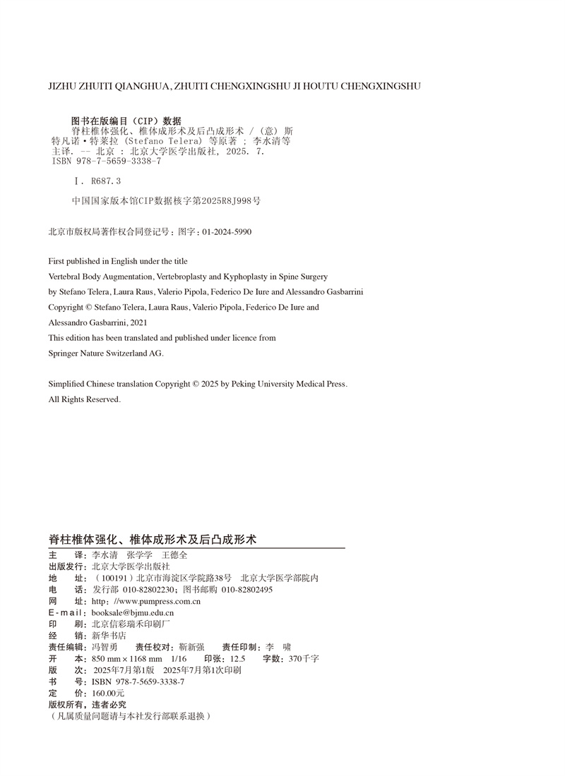 脊柱椎体强化 椎体成形术及后凸成形术 李水清 张学学等译 全面阐述椎体成形术和球囊后凸成形术等椎体强化技术北京大学医学出版社