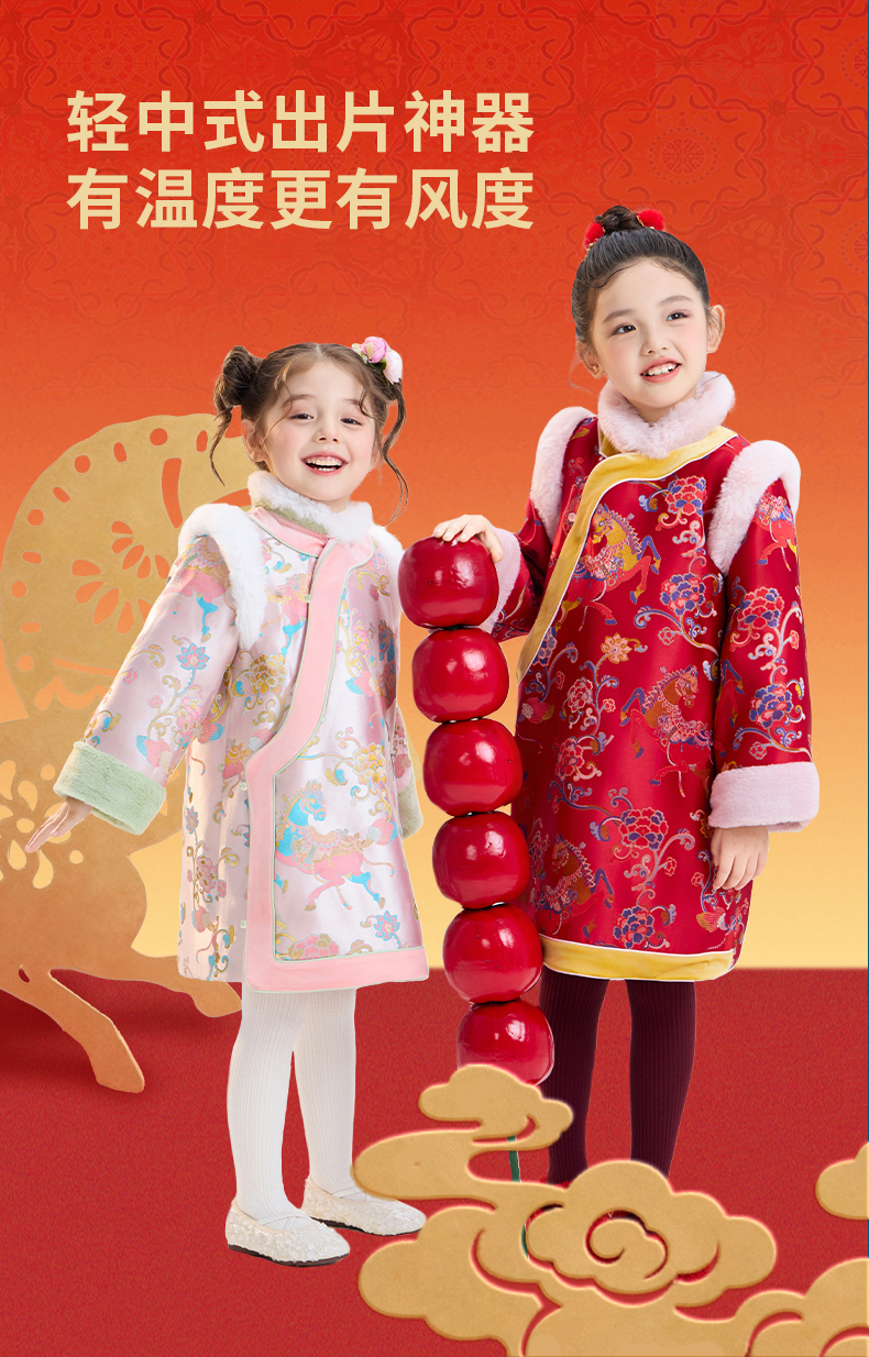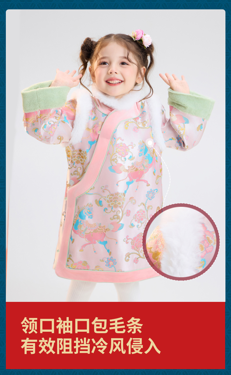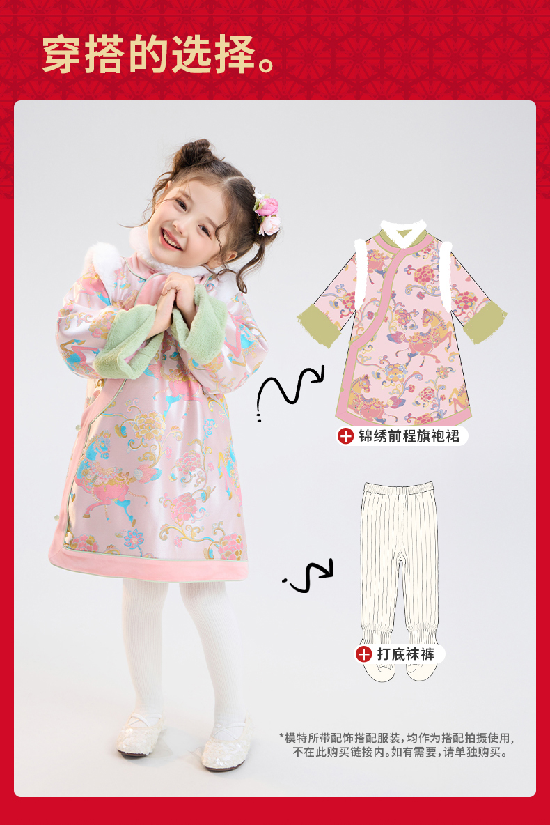 年衣童装旗袍裙儿童冬季新款女童中式改良旗袍锦绣前程旗袍裙