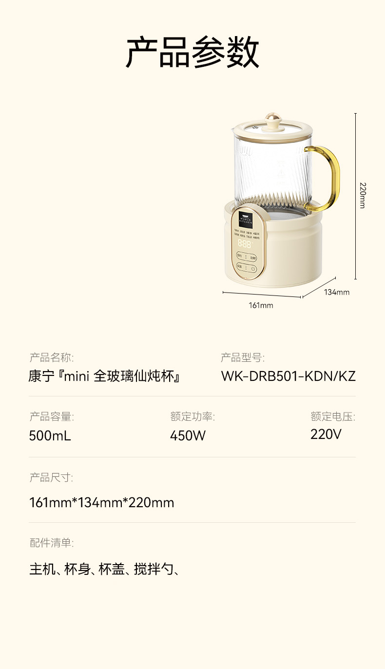 康宁玻璃鲜炖杯WK-DRB501-KDN/KZ(无炖盅)【分仓直发,72小时发货,周末节假日不发货】