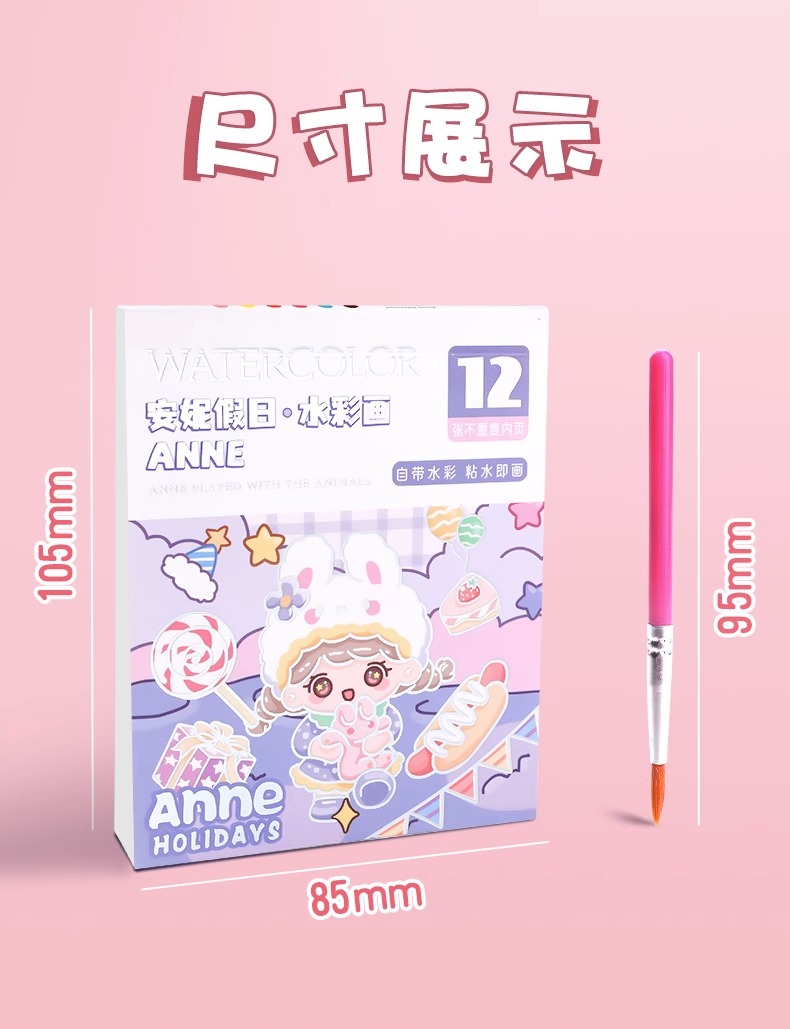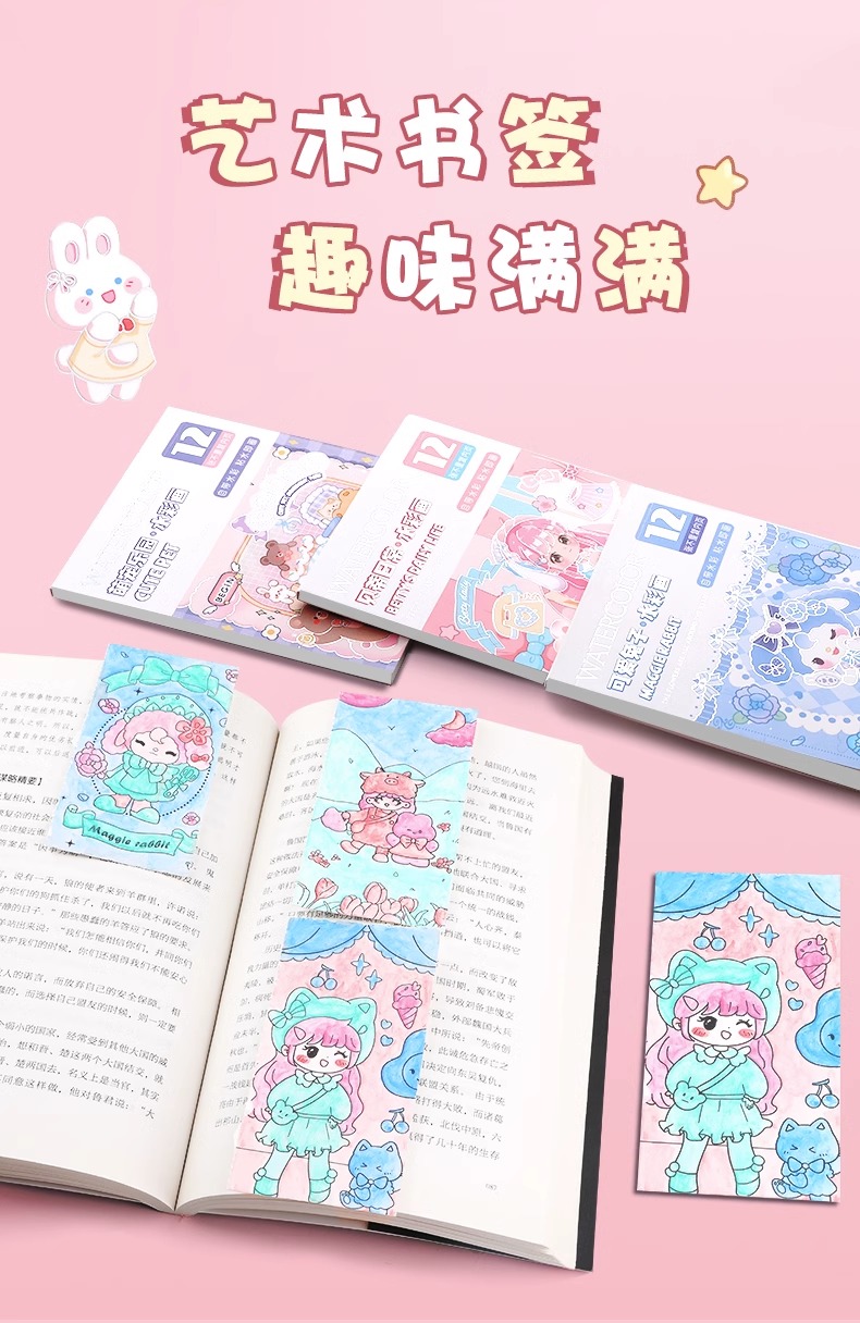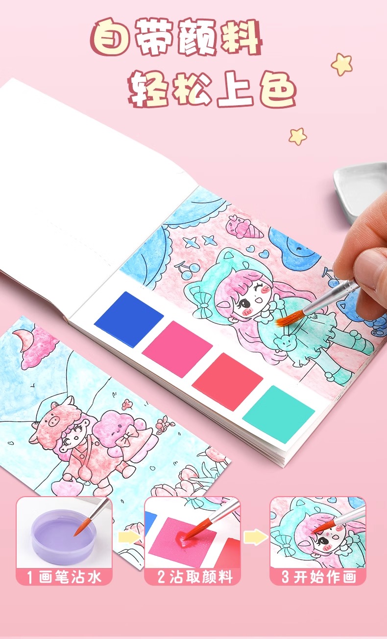 福利!【5本装12页 沾水即画】儿童水彩涂色本填色便签涂鸦画纸自带水彩水粉的画画本小学生图画本随身便携幼儿园宝宝手绘颜料DIY书签绘画