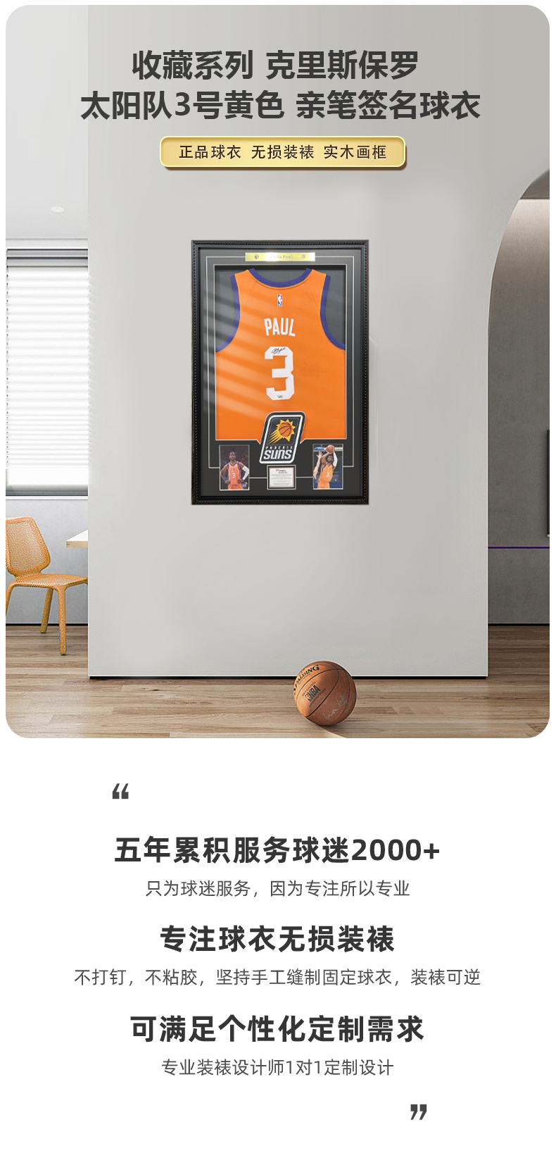 收藏系列 保罗 太阳队3号黄色 亲笔签名球衣