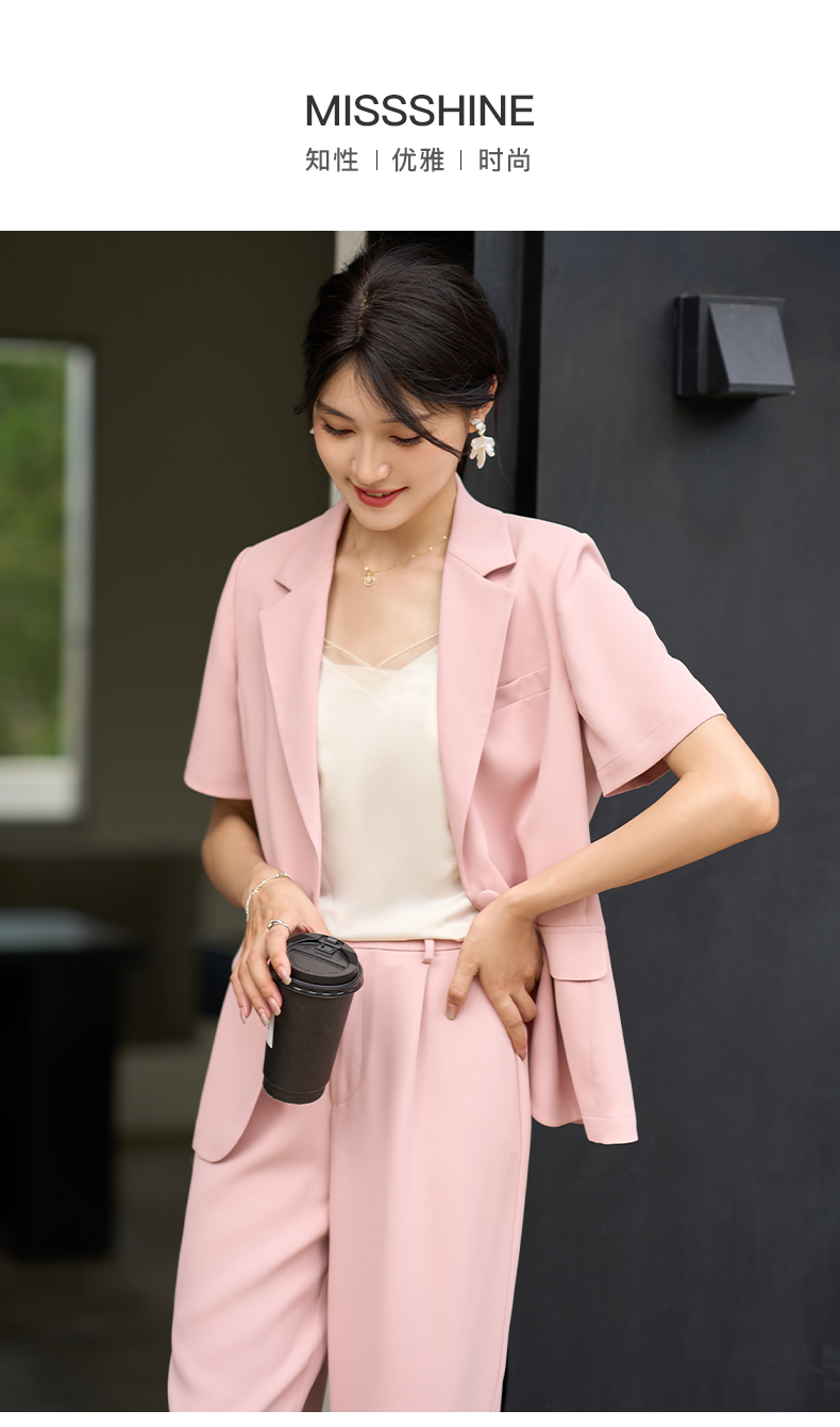 剩S/M/L/XL/XXL 米思阳2025夏季新款通勤职业短袖西装高级感减龄一粒扣上衣女210