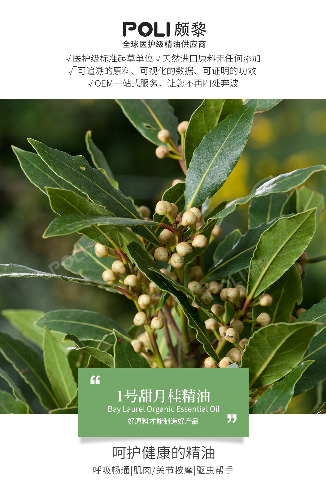 波斯尼亚进口有机甜月桂精油 美容院刮痧精油 颇黎单方精油原料oem