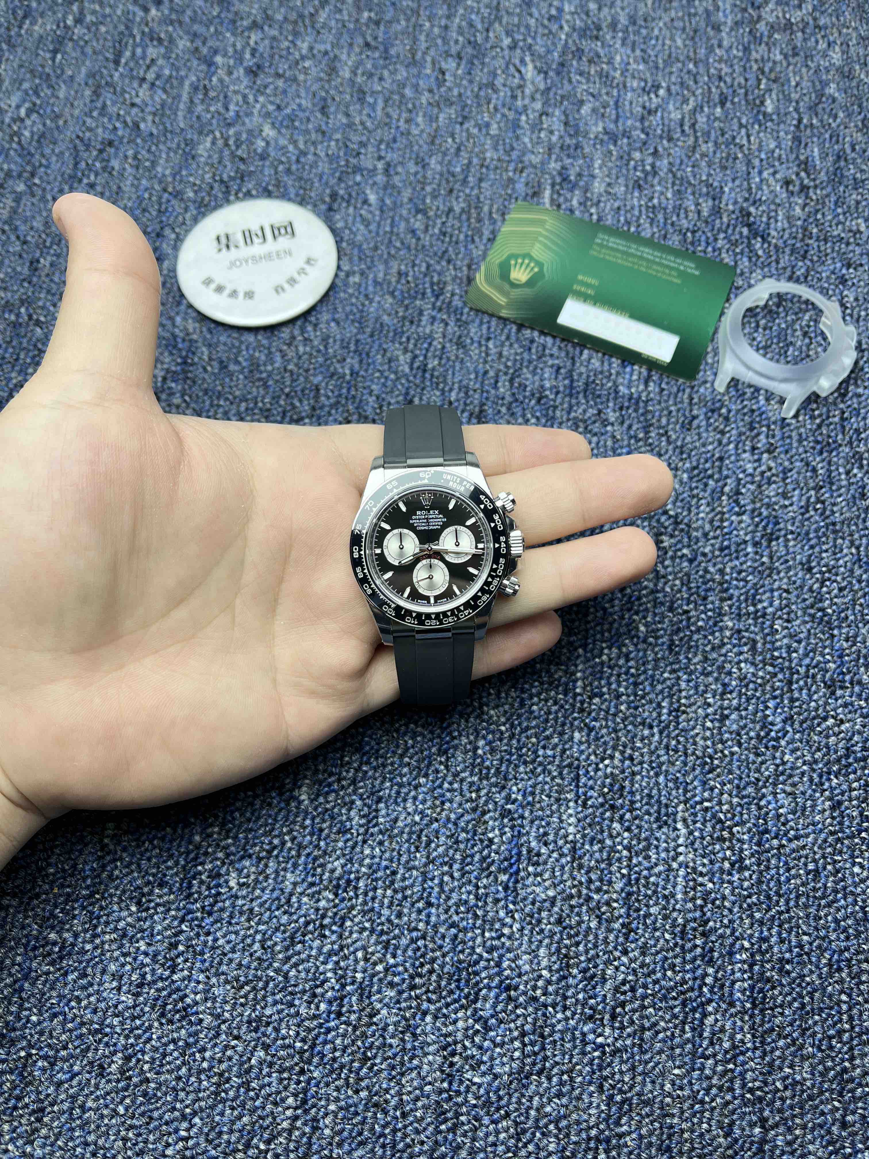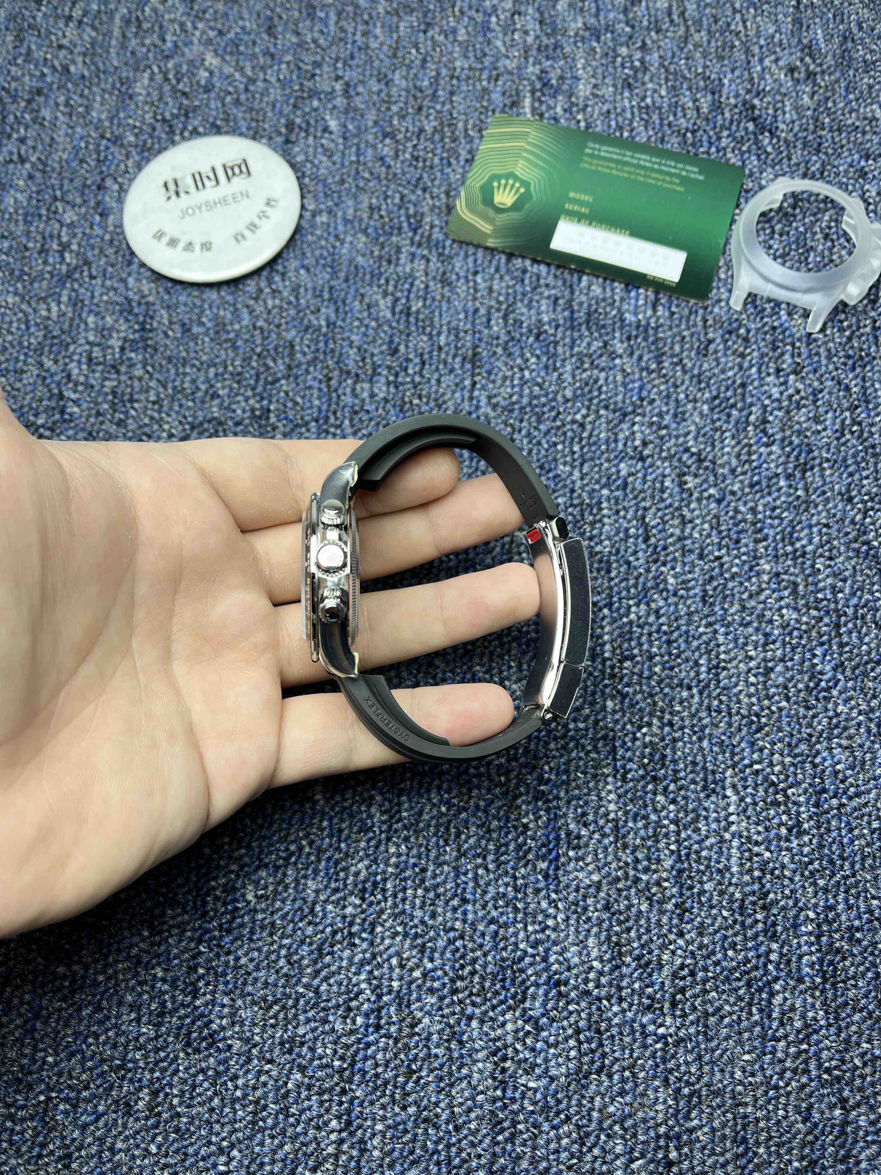 真正意义上的配重版本,壳没加厚的颠覆性的配重版本,真正把表壳重量配重到接近于正品。而不是市场配重版本,表头重量不够,在胶带里加一整铁块的做法。VS追求的不单单是重量接近,还要手表佩戴出正品的质感,质量稳定可靠。值得信赖的版本。