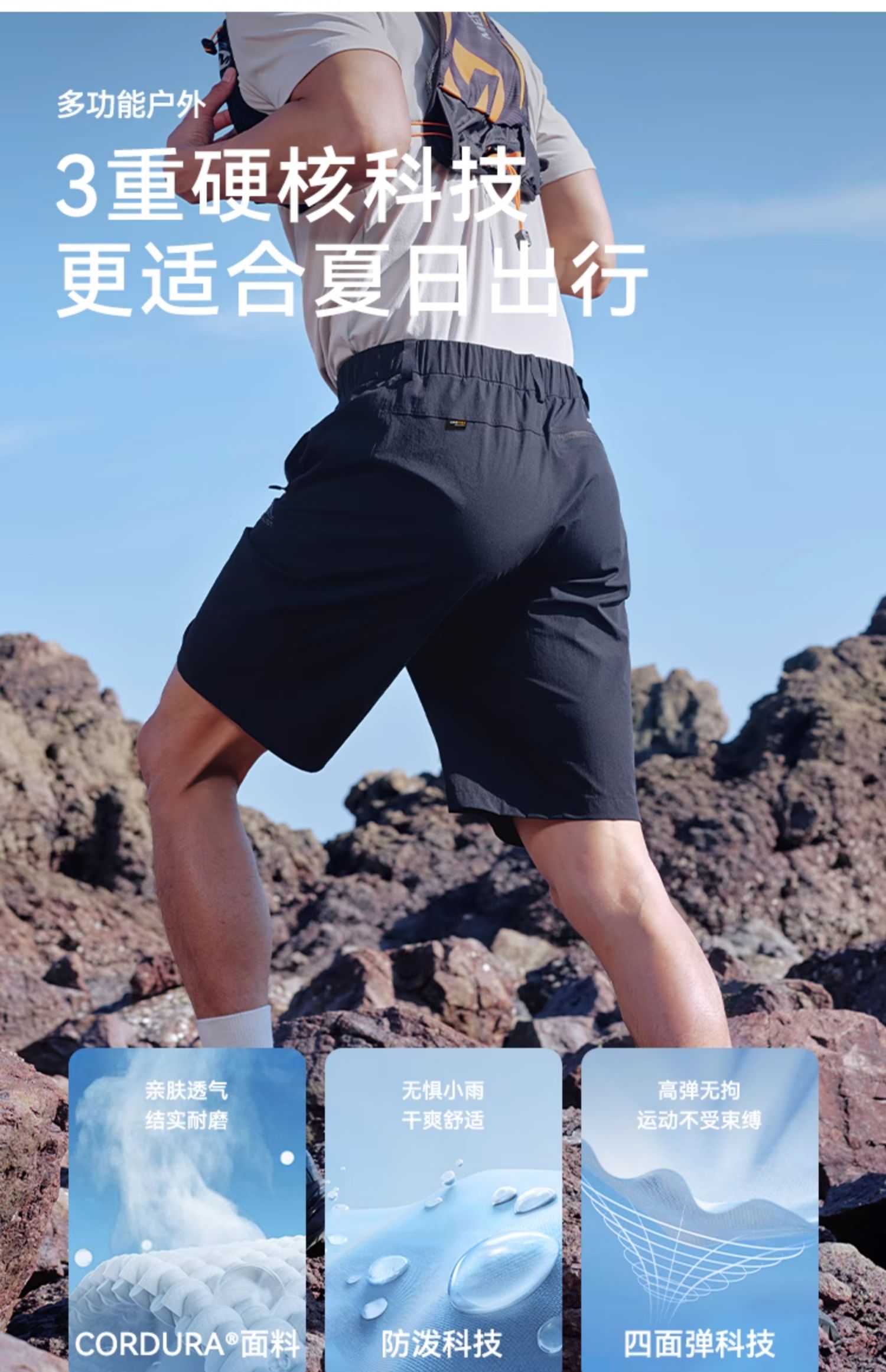 伯希和户外运动短裤男CORDURA考杜拉高弹透气登山徒步快干五分裤