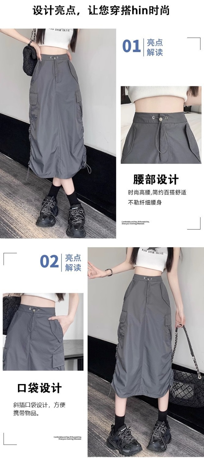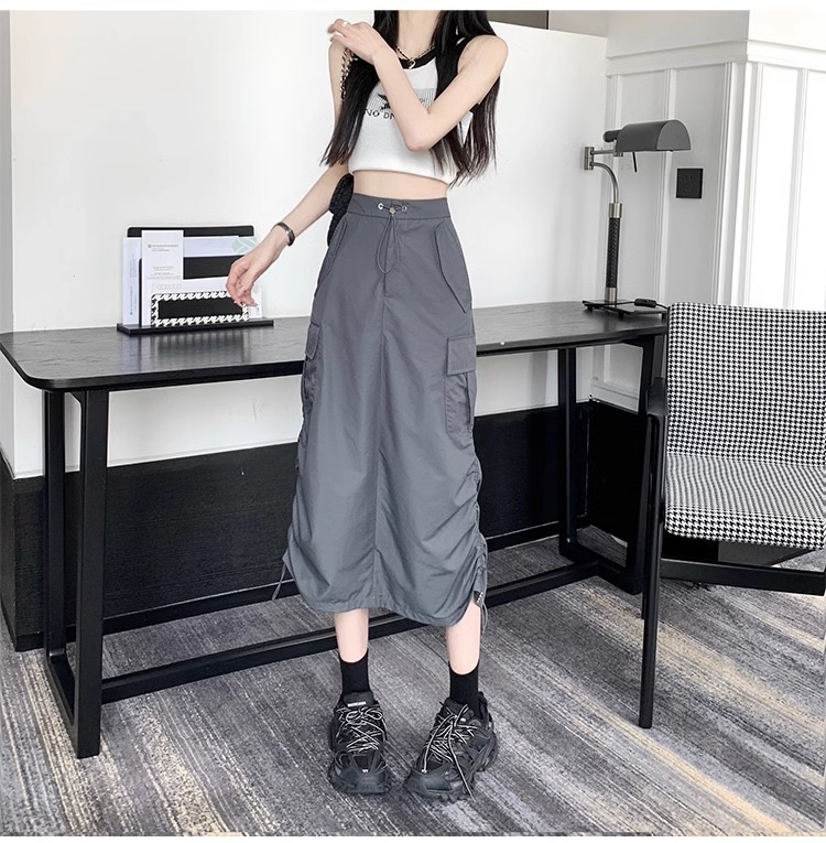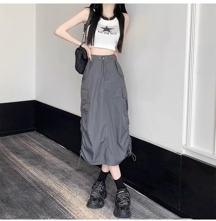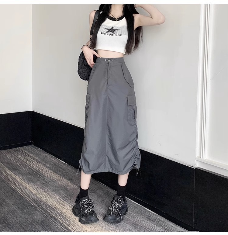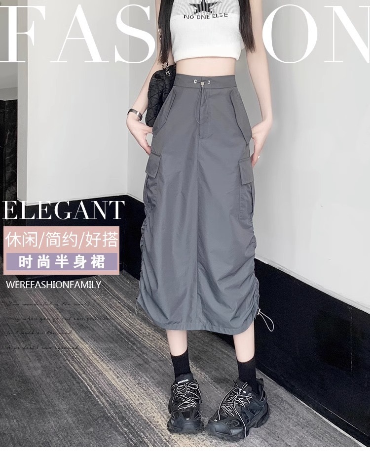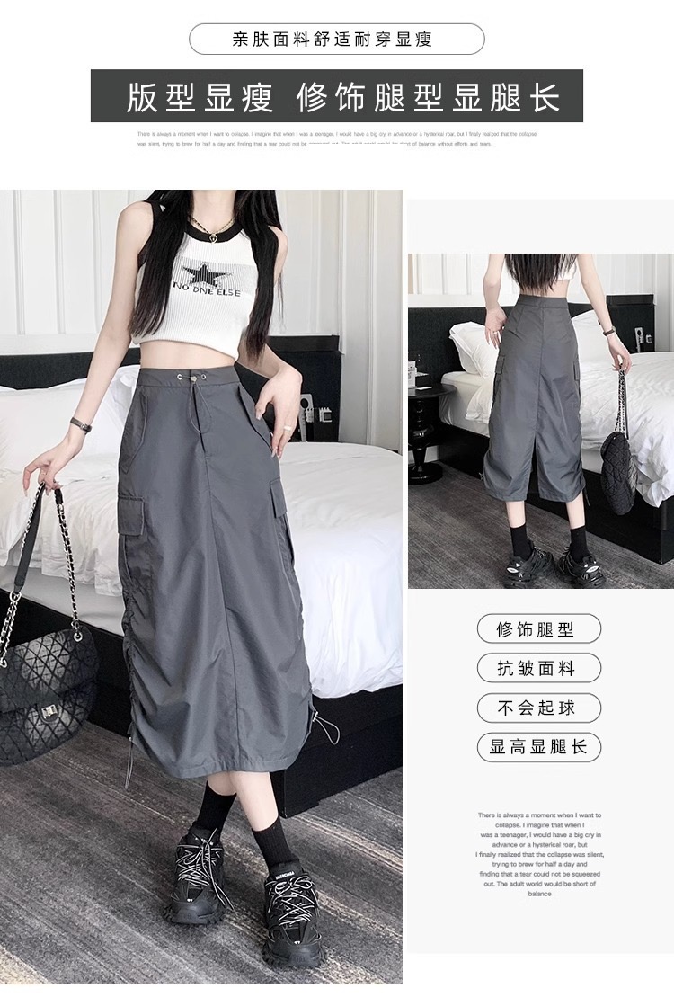【YW】无忧购美式休闲百搭高腰显瘦中长款a字抽绳工装裙112(截单后7天发货)25年清仓捡漏