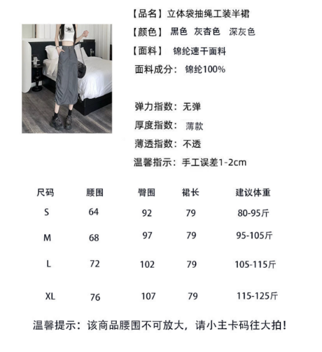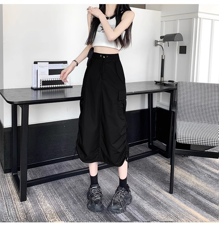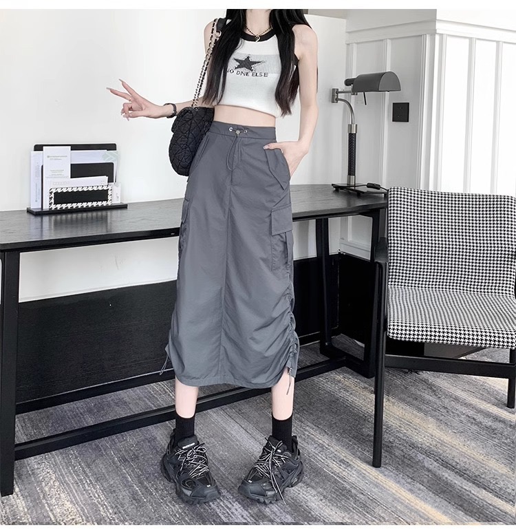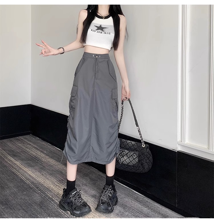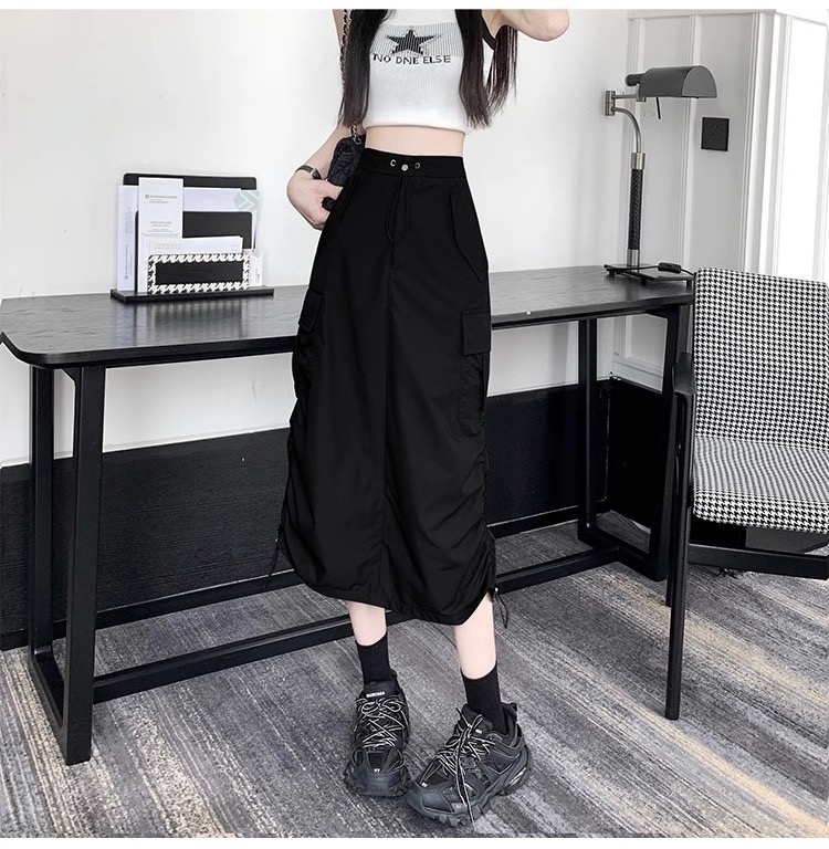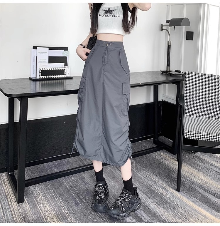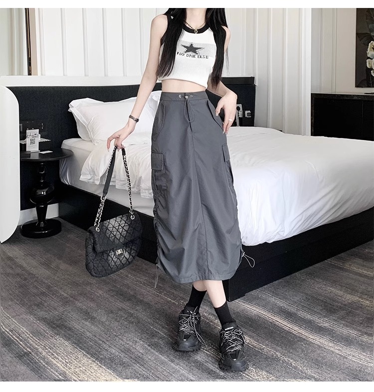 【YW】无忧购美式休闲百搭高腰显瘦中长款a字抽绳工装裙112(截单后7天发货)25年清仓捡漏