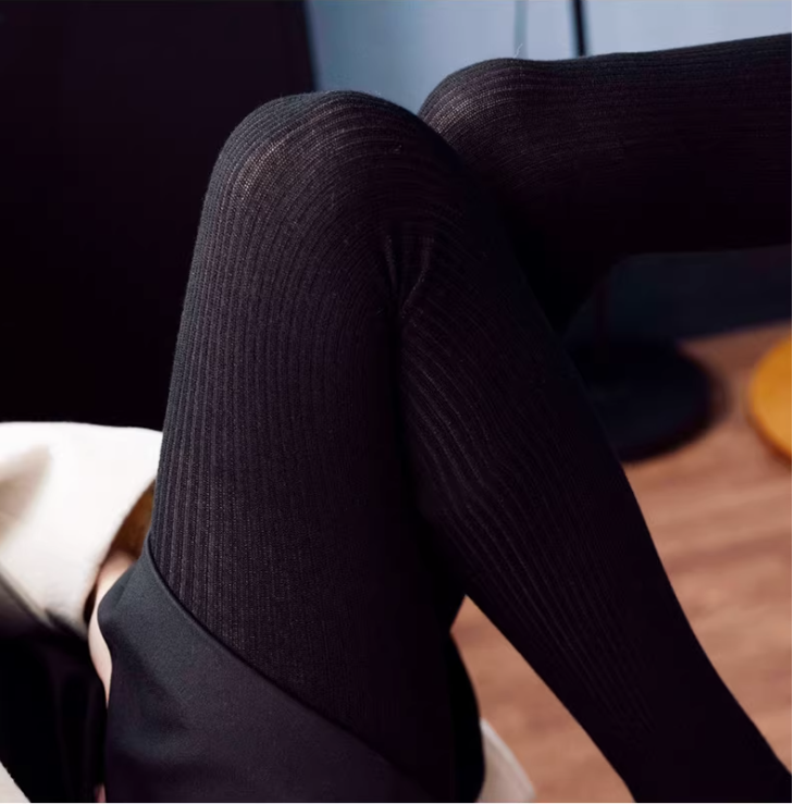 BL2037厚木400D相当吸湿发热针织竖纹打底裤秋冬保暖加裆十分裤