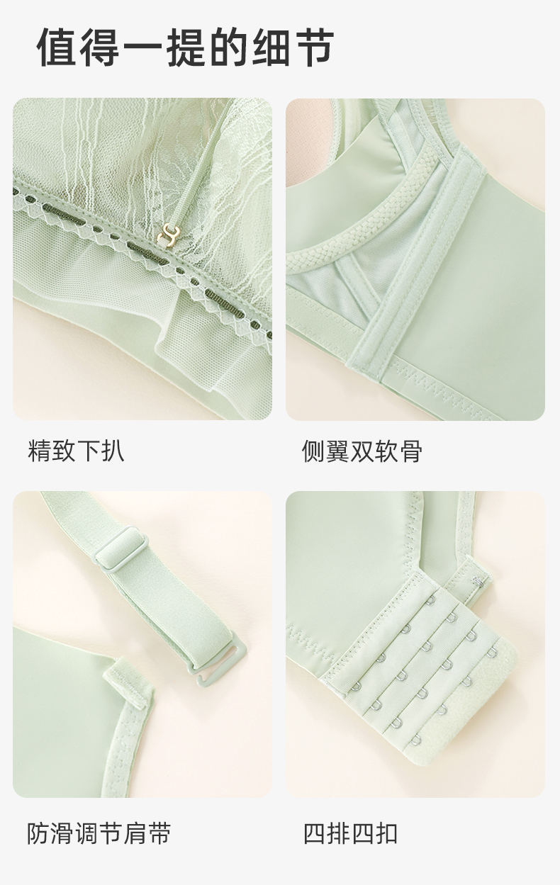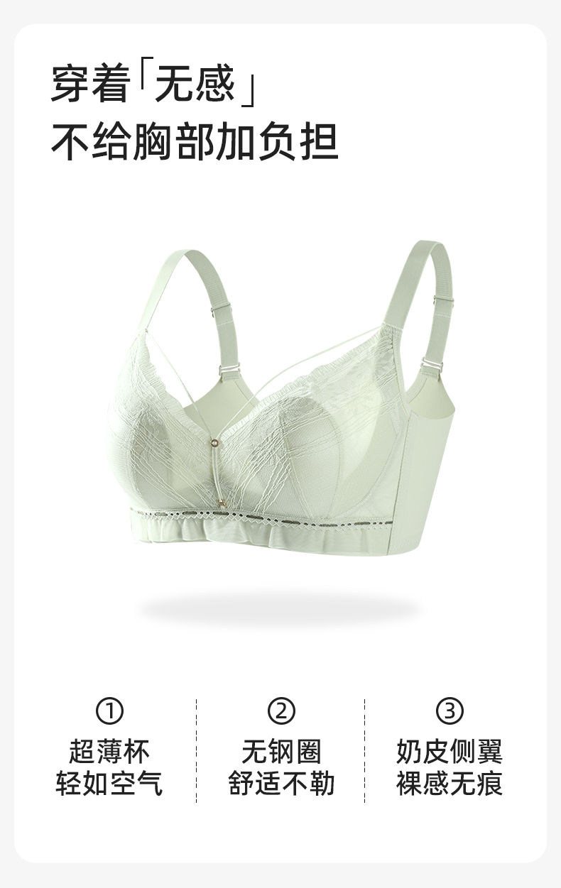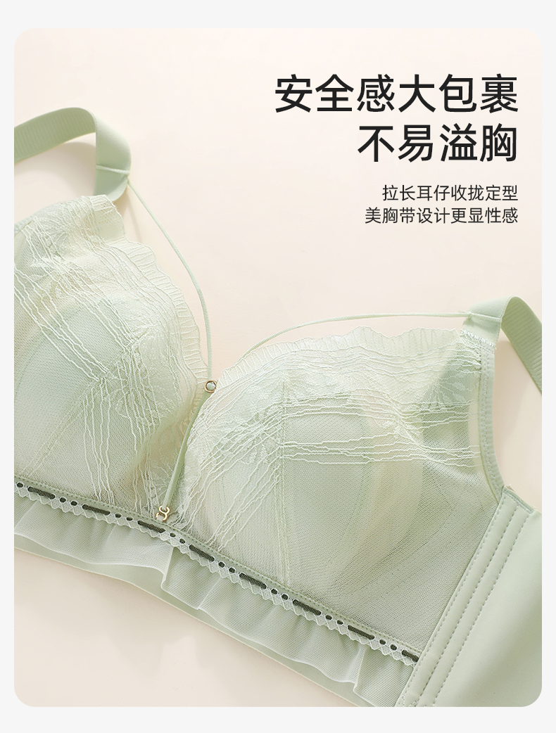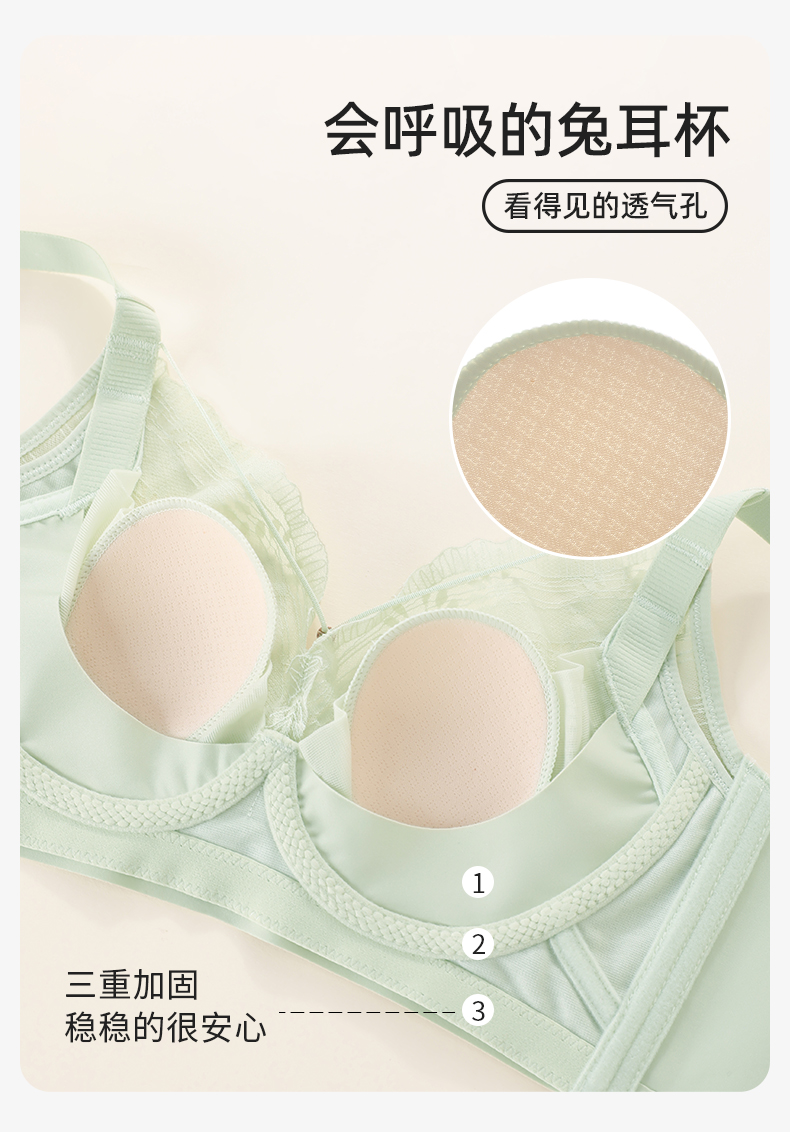 【大胸显小CD杯】熳洁儿 轻乳棉无钢圈兔耳杯文胸幻境蕾丝系列收副乳24761520