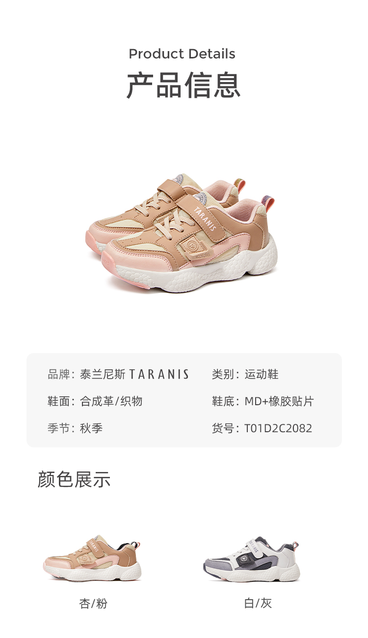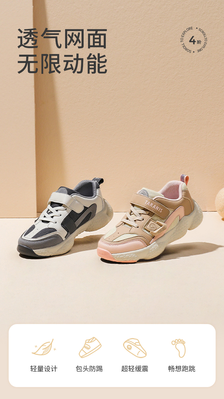 泰兰尼斯秋季中大童网布透气泰极带运动鞋T01D2C2082