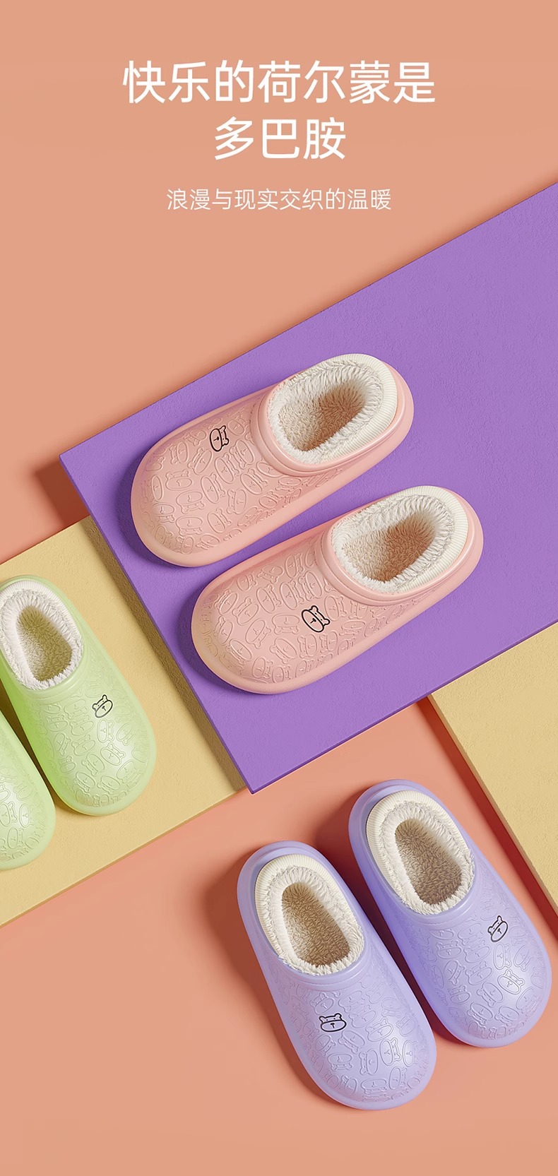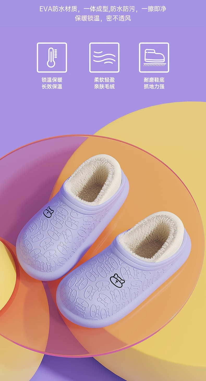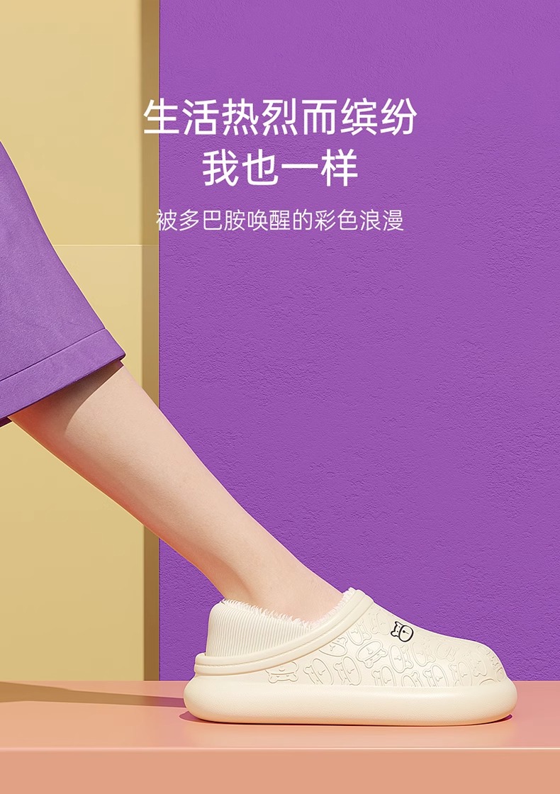 「7色可选!多巴胺色系」新款棉拖鞋女士 秋冬季男包跟防水暖绒厚底毛绒月子鞋外穿