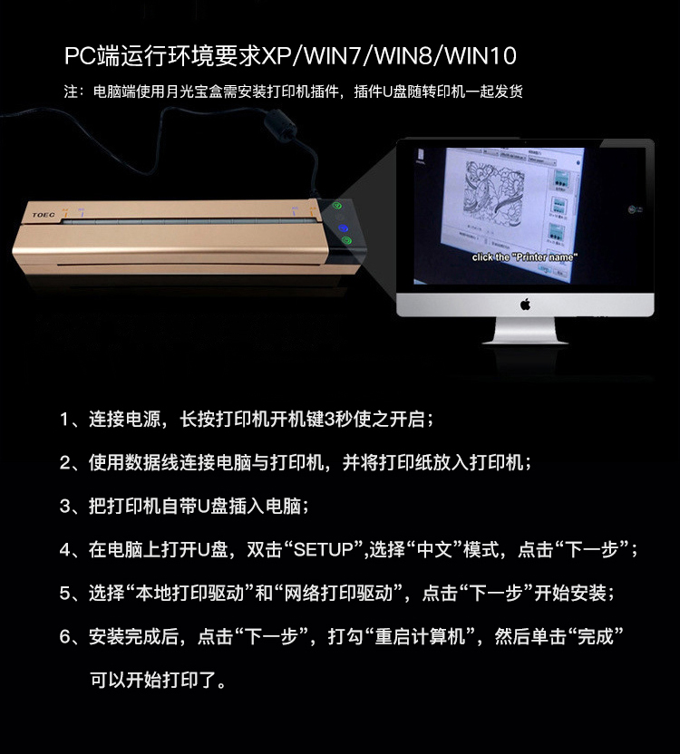 便携式迷你月光宝盒转印机热敏蓝牙纹身打印机惊蛰刺青器材