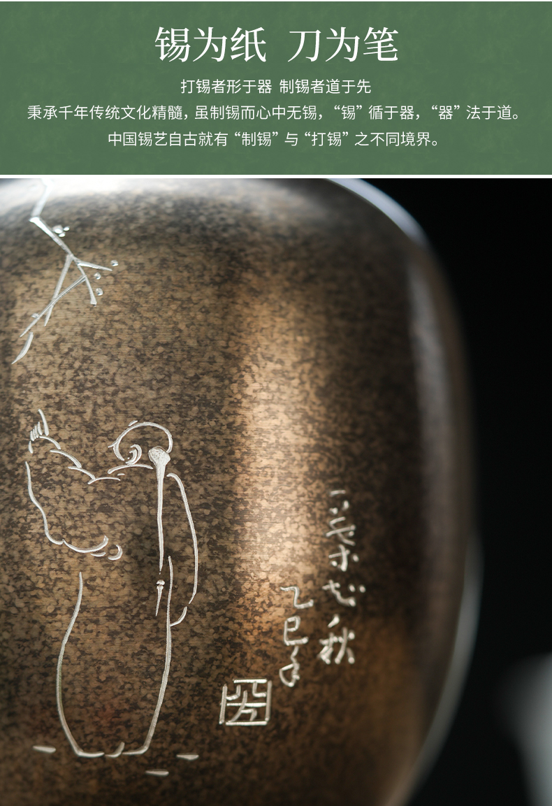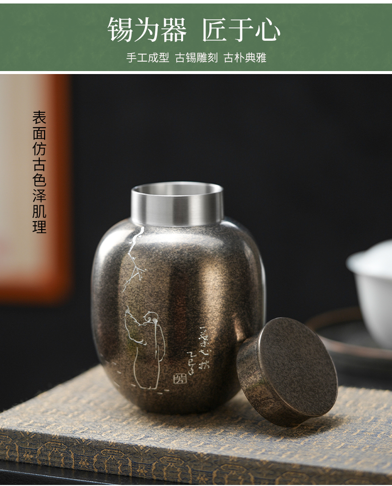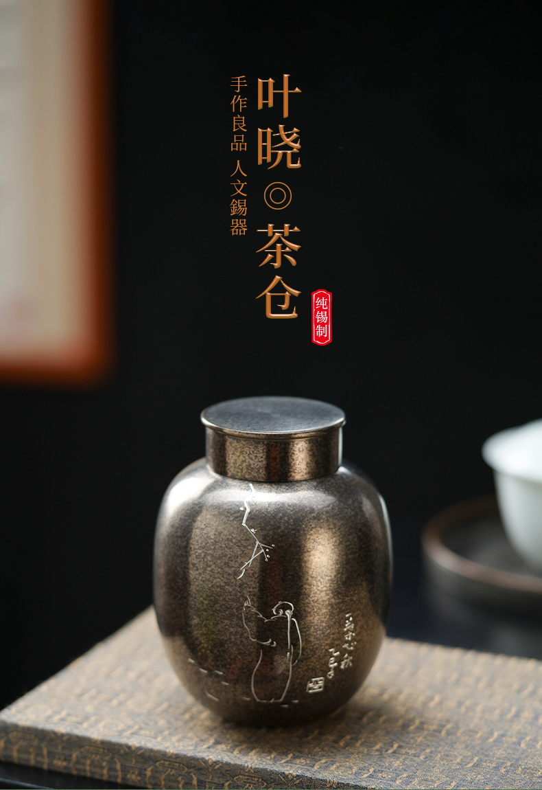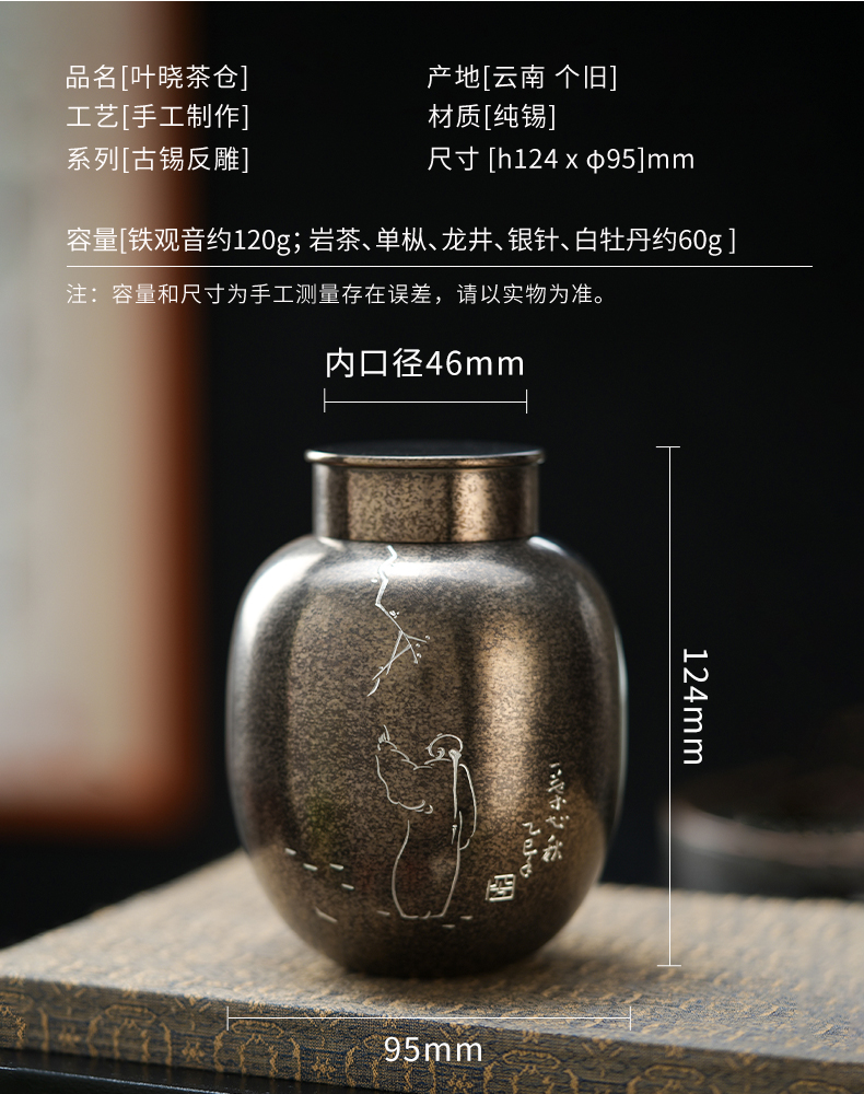 斑锡龙叶晓茶仓复古小号锡罐纯锡茶叶罐密封储茶云南个旧手工锡器