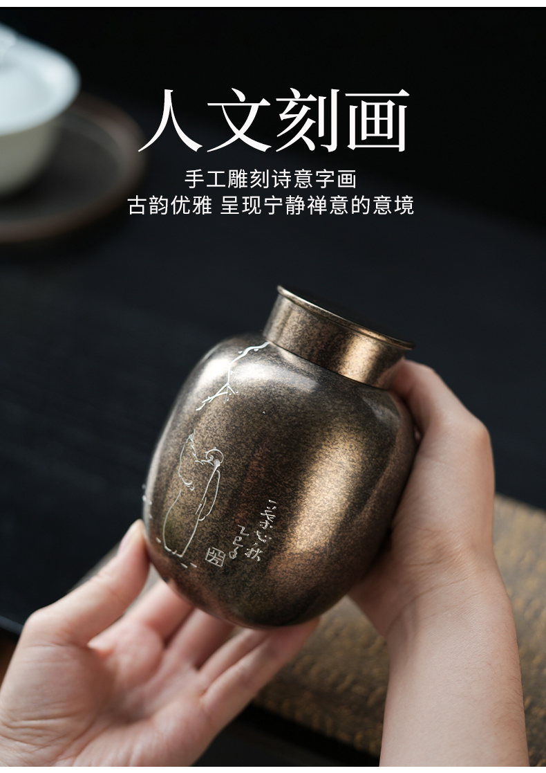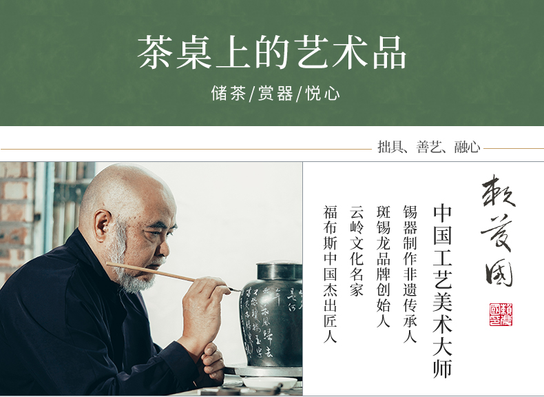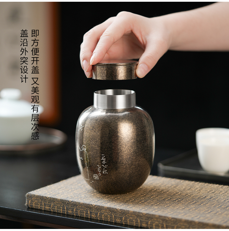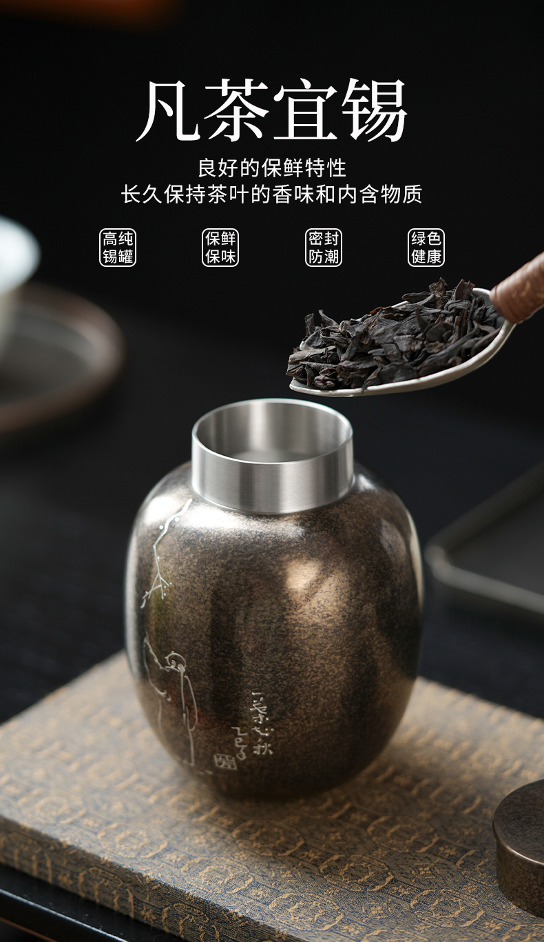 斑锡龙叶晓茶仓复古小号锡罐纯锡茶叶罐密封储茶云南个旧手工锡器