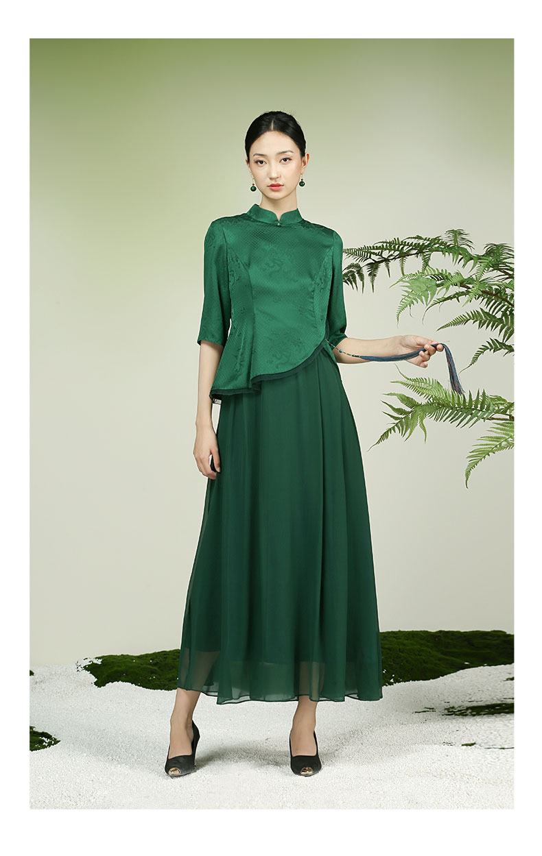 吉祥衣家新中式国风高定真丝气质显瘦修身女装清扬婉邂逅连衣裙