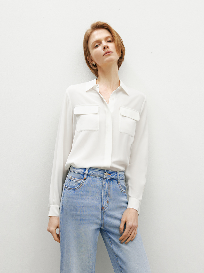 【经典款】【商场同款】麦檬春秋正肩垂坠真丝衬衫5992221061Q