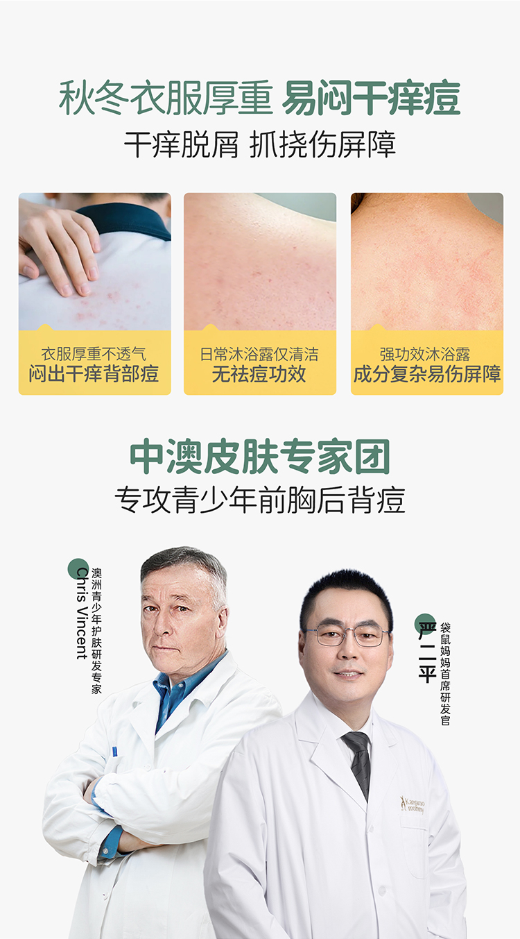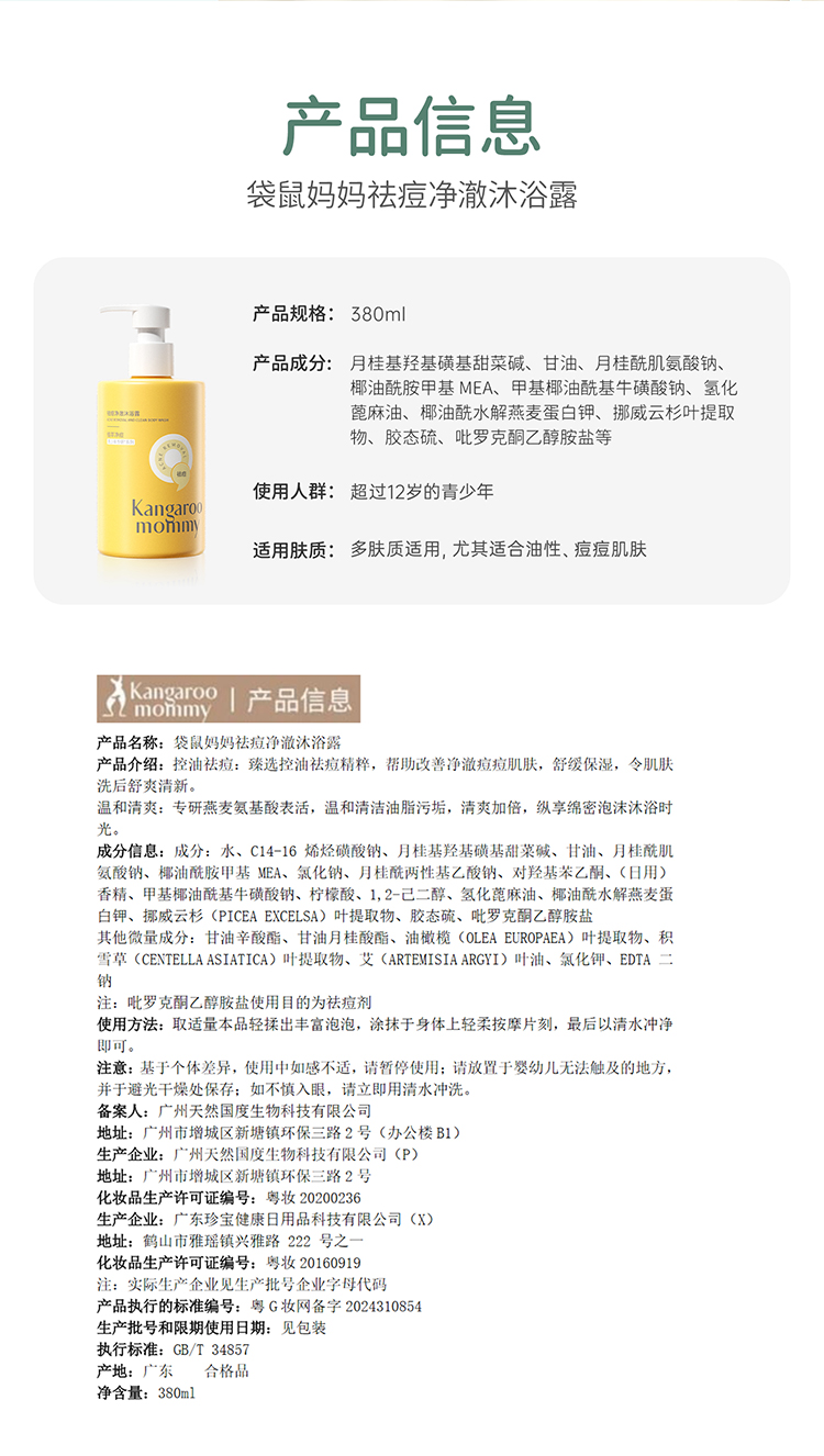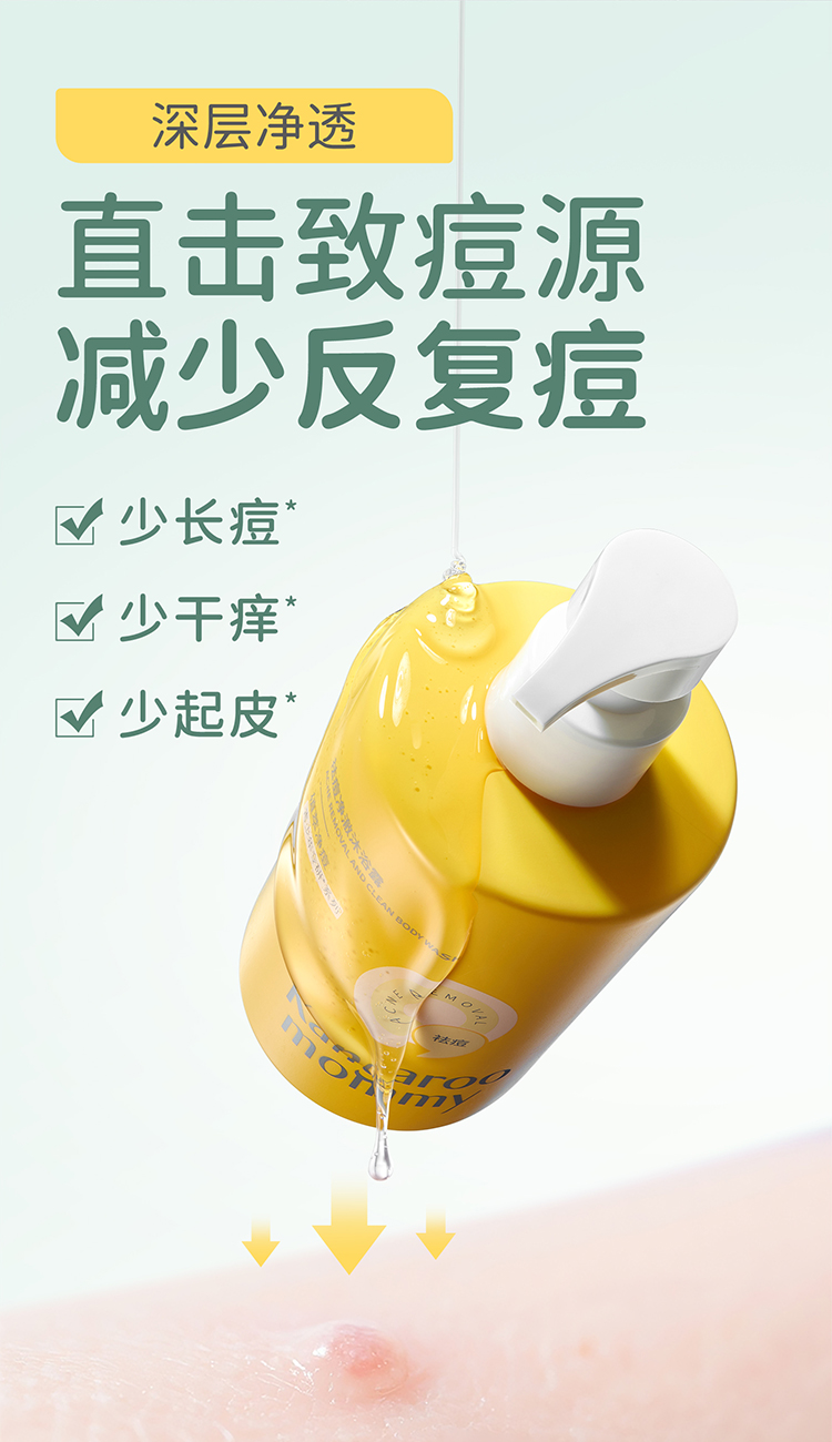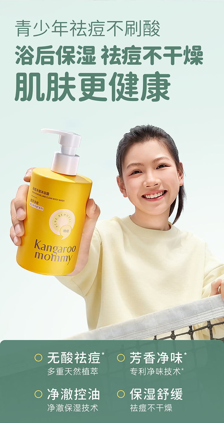 【TOP登陆少年组合同款】专研青少年背痘 无酸祛痘 夏季控油清爽 袋鼠妈妈祛痘净澈沐浴露380ml