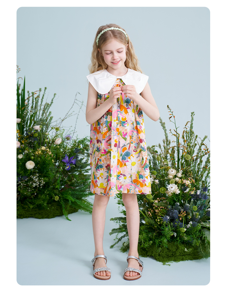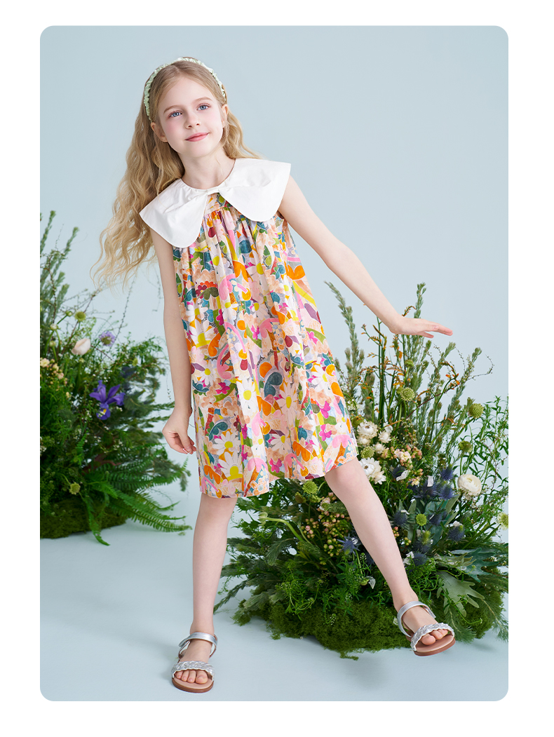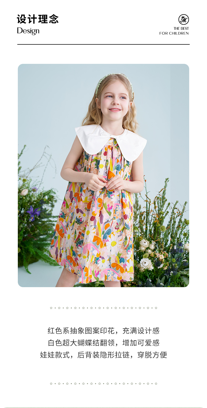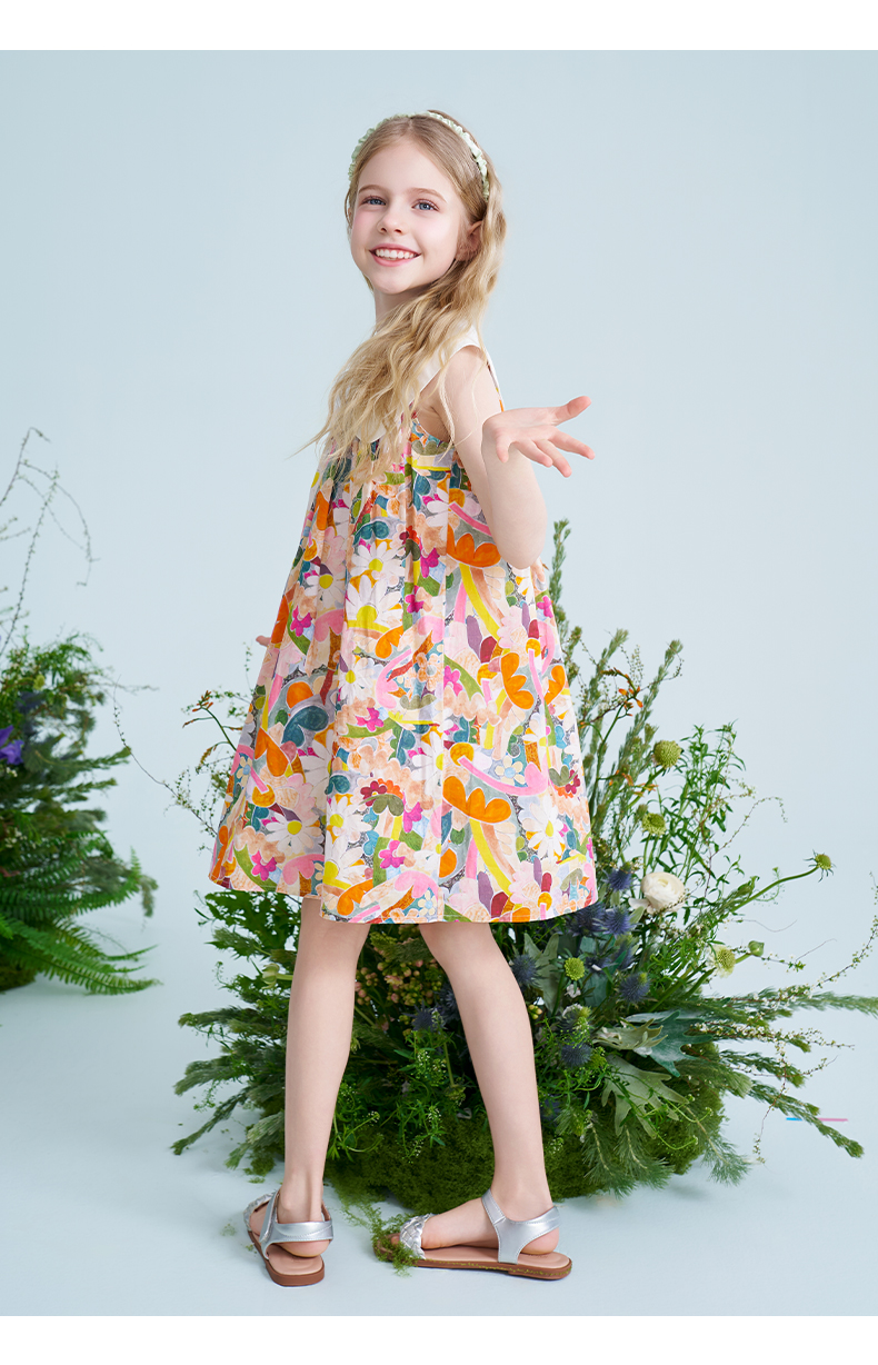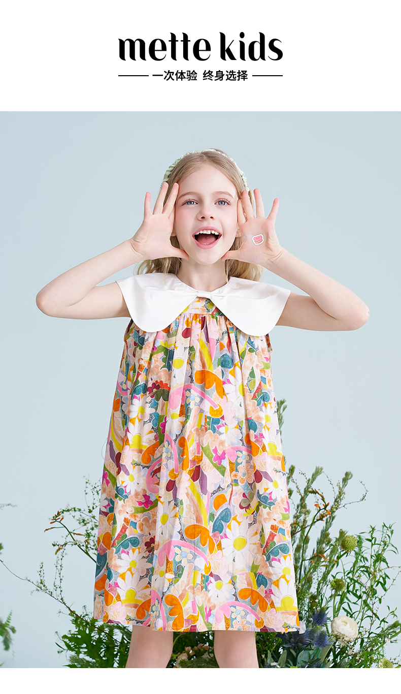 mettekids儿童连衣裙2025夏季新款女童法式碎花公主印花纯棉裙子
