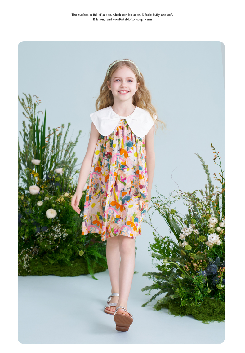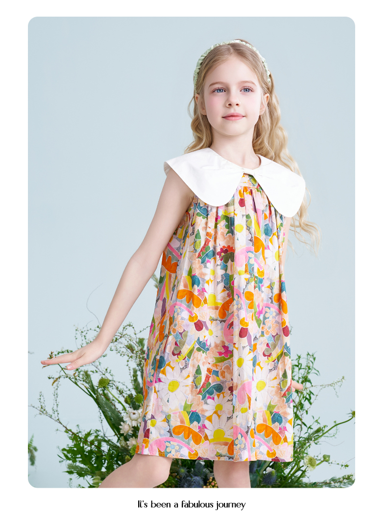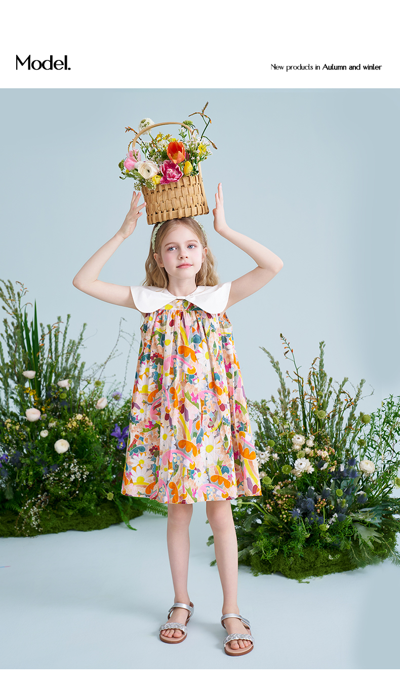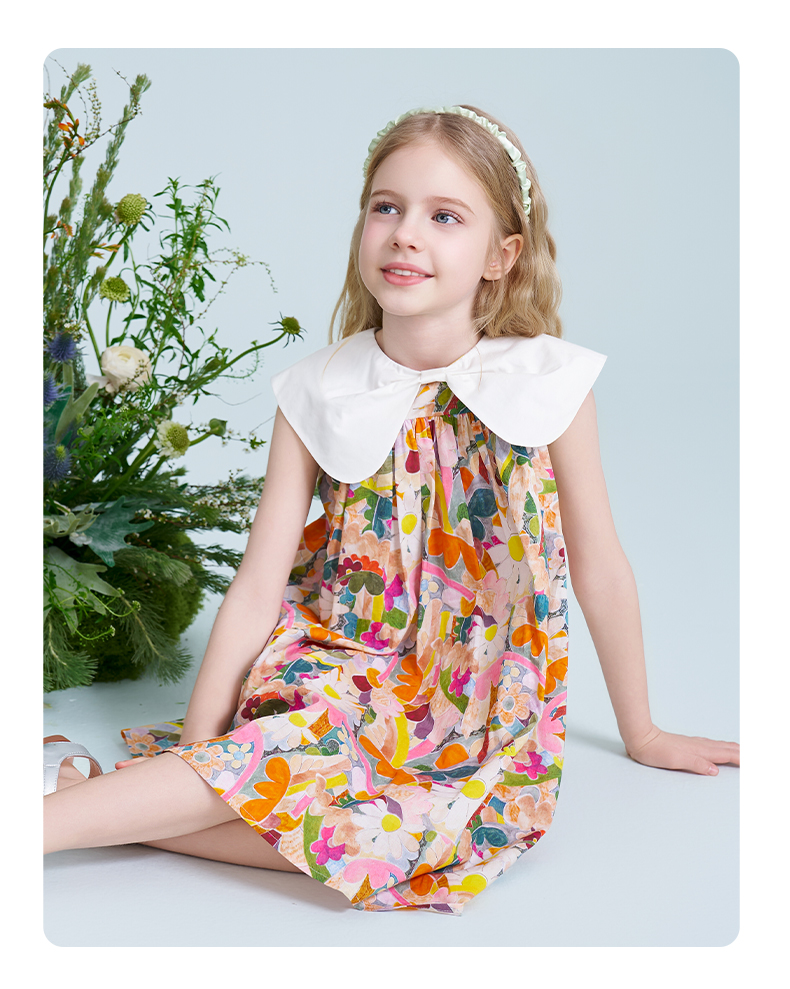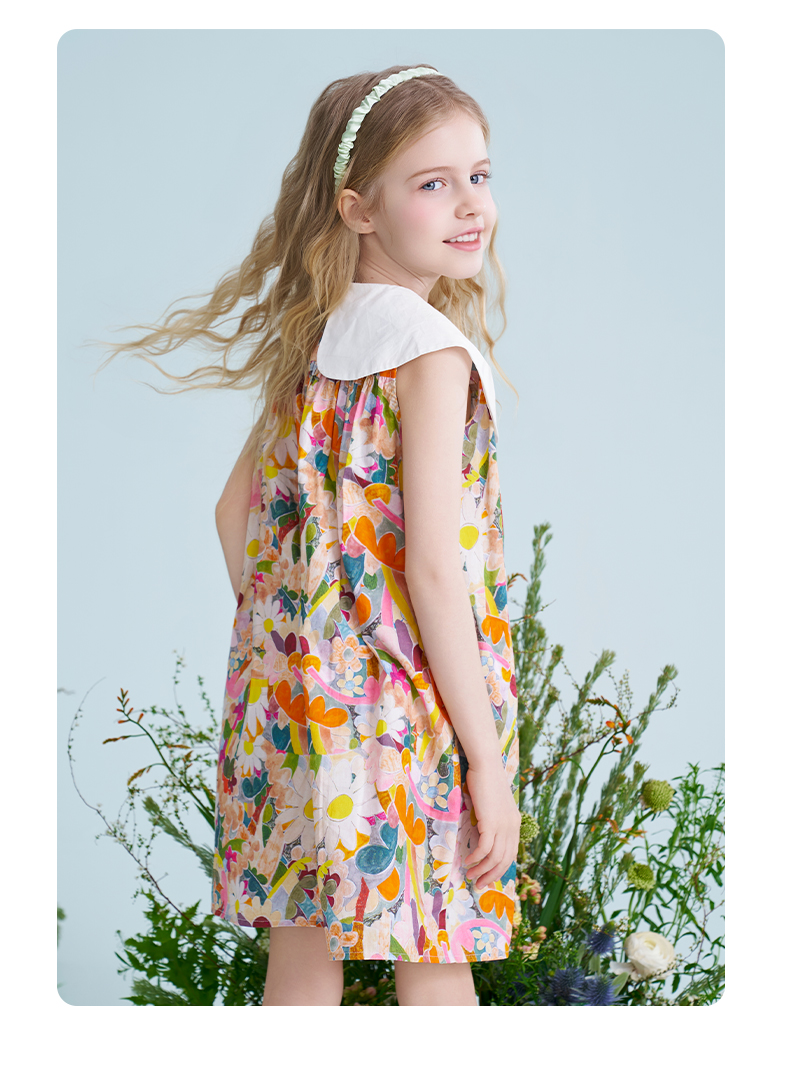 mettekids儿童连衣裙2025夏季新款女童法式碎花公主印花纯棉裙子