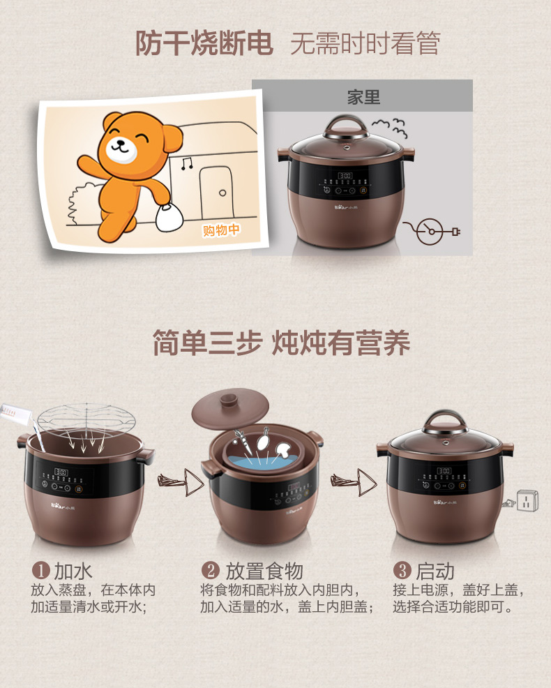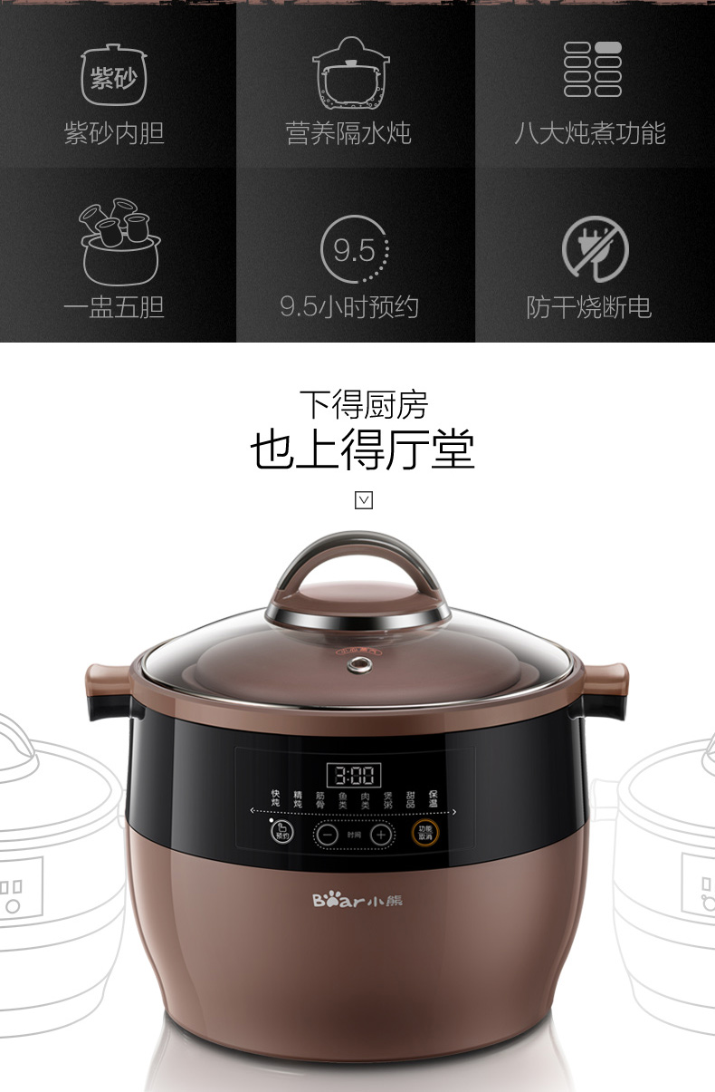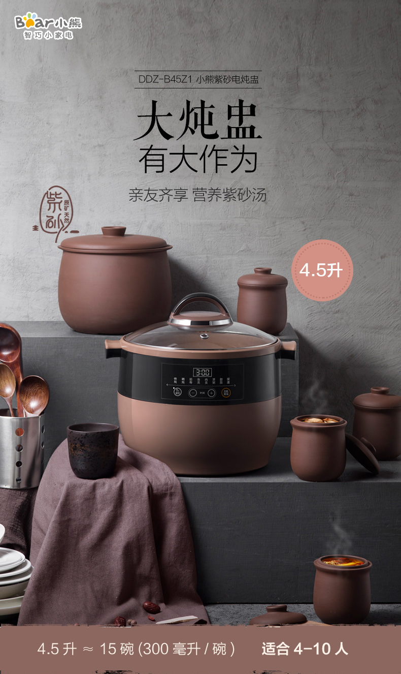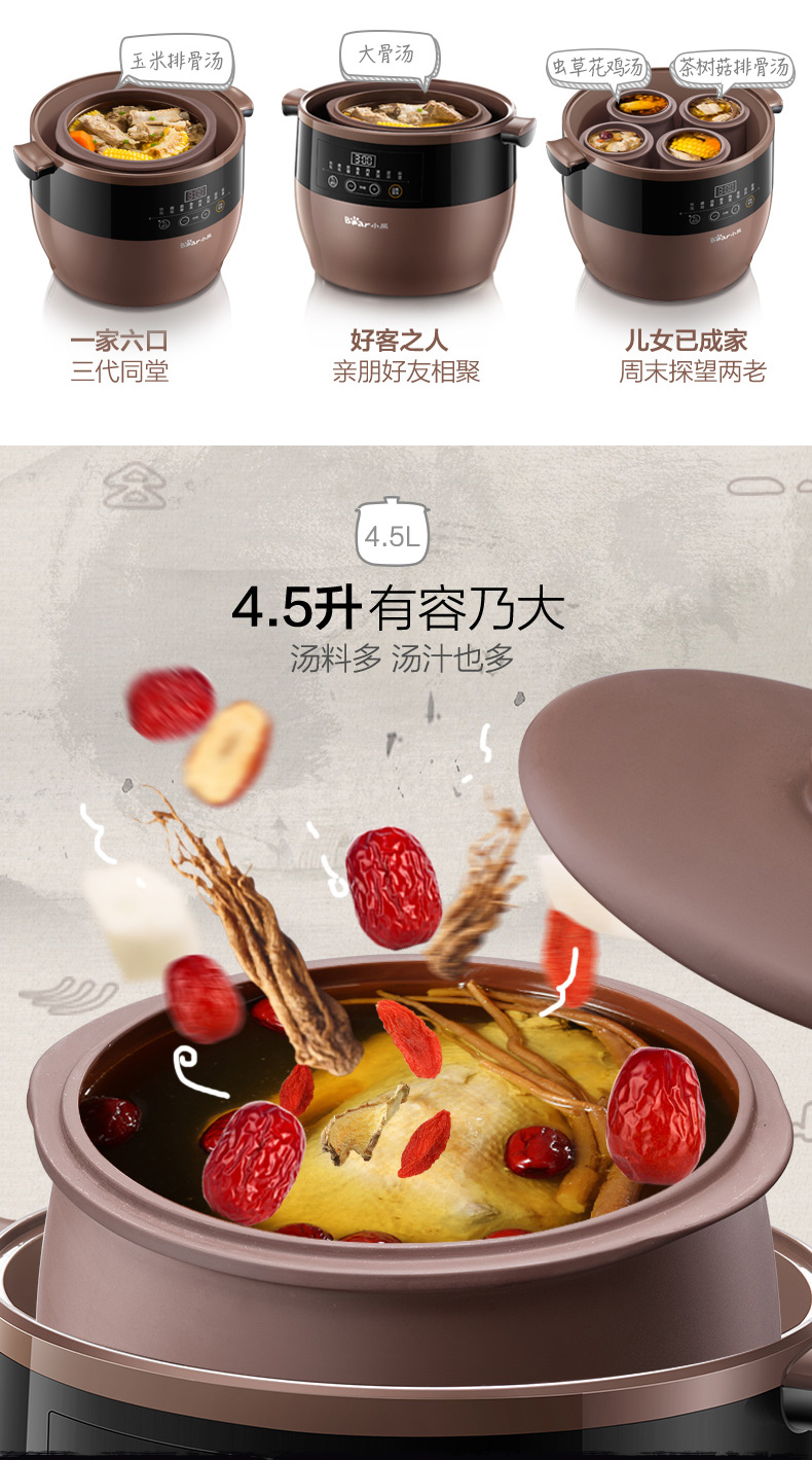 Bear/小熊 DDZ-B45Z1电炖锅大容量紫砂炖锅隔水炖盅煲汤锅全自动