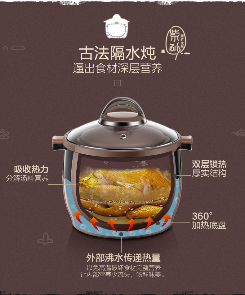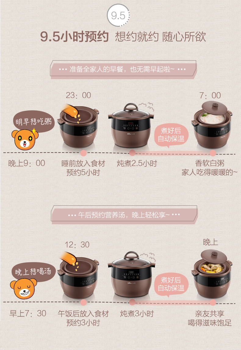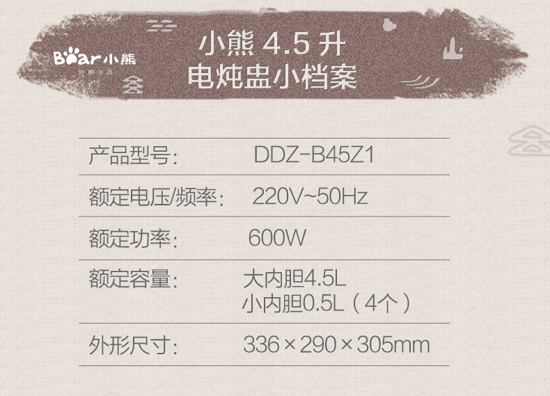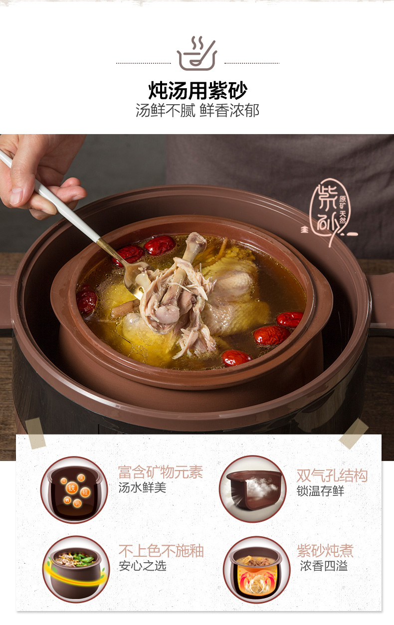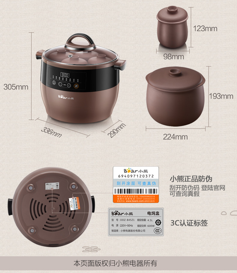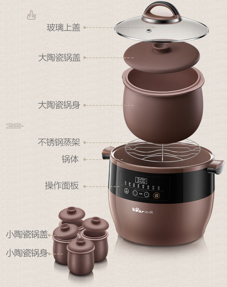 Bear/小熊 DDZ-B45Z1电炖锅大容量紫砂炖锅隔水炖盅煲汤锅全自动
