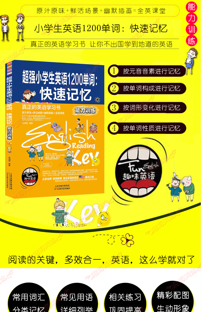 正版现货 小学生英语1200单词:快速记忆 纯正美式口语 鲜活场景幽默插画 小学英语单词记忆大全书 新概念英语学习方法