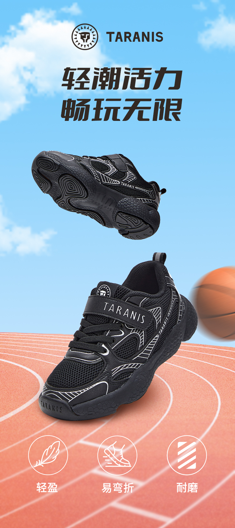 泰兰尼斯春季款女童舒适校园跑步鞋男童休闲轻便潮百搭减震运动鞋子 T01D5A6296