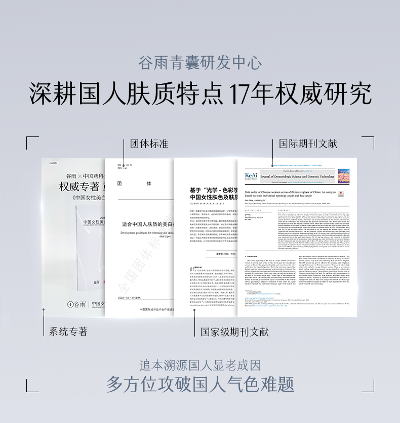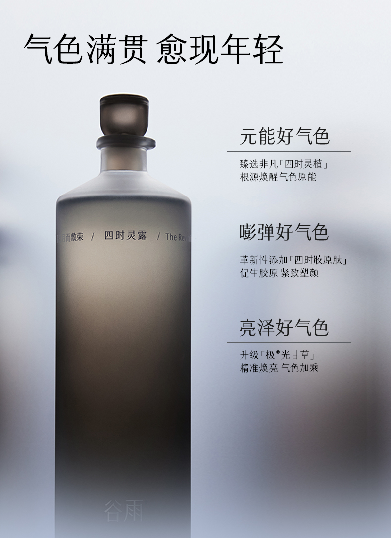 - 谷雨,更适合中国人肤质的植萃美白。专研中华珍稀美白植萃光甘草定,深入研究中国人肤质特点,打造中国女性独有的仙气白。