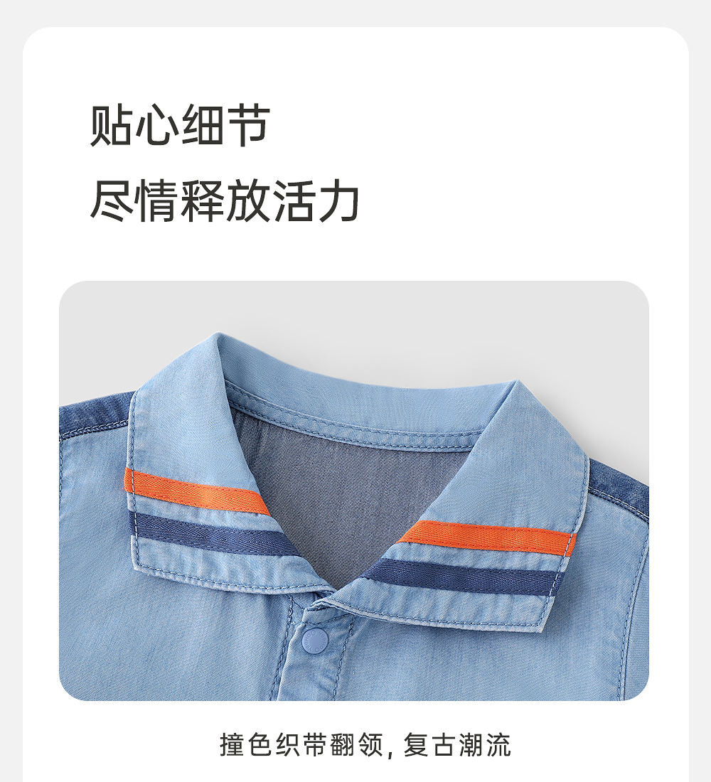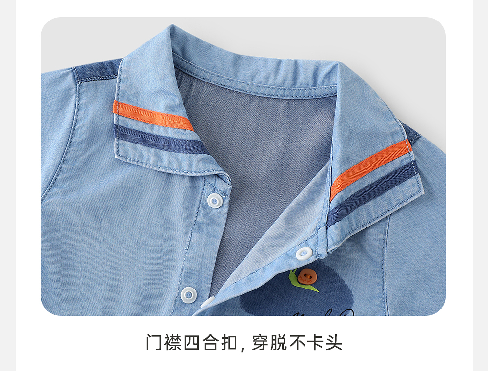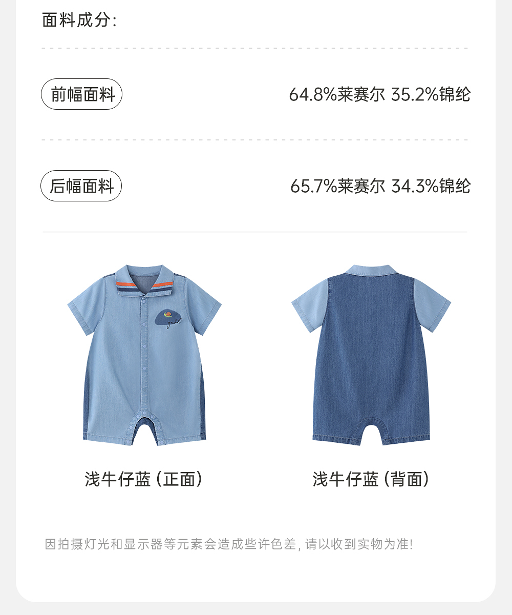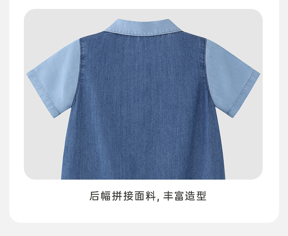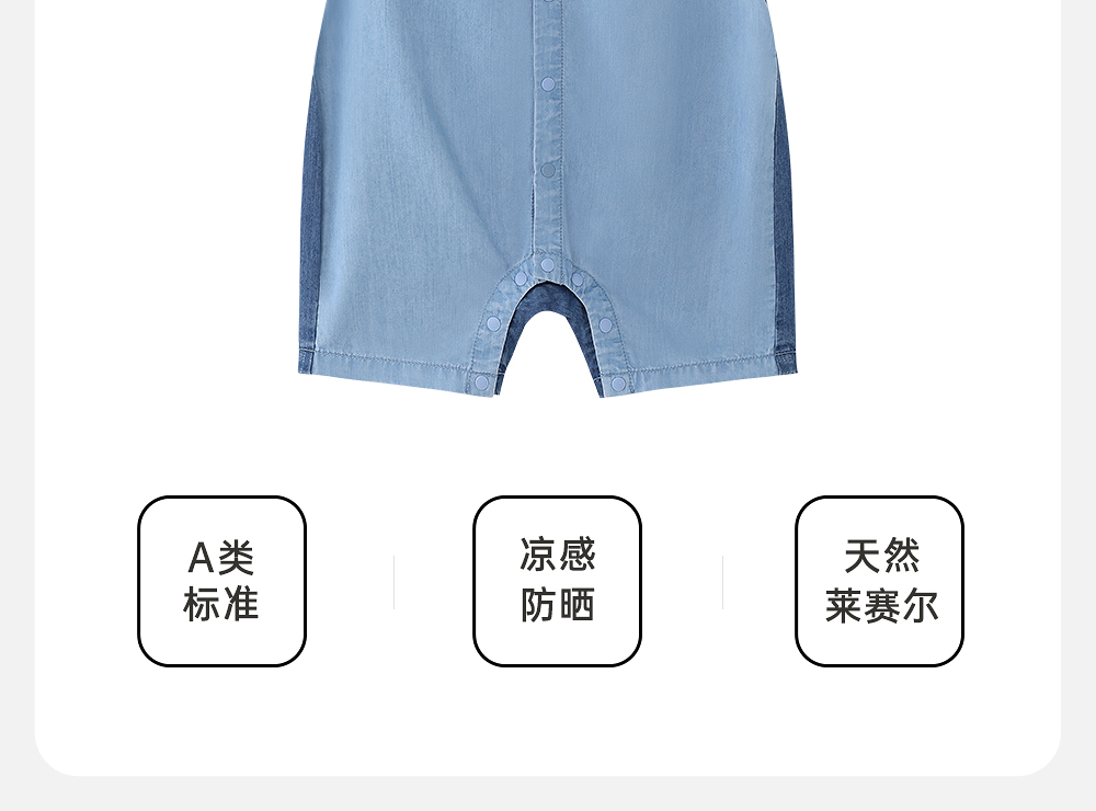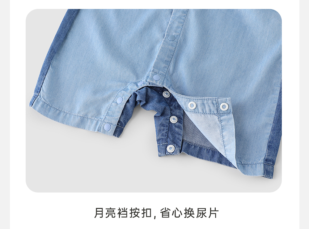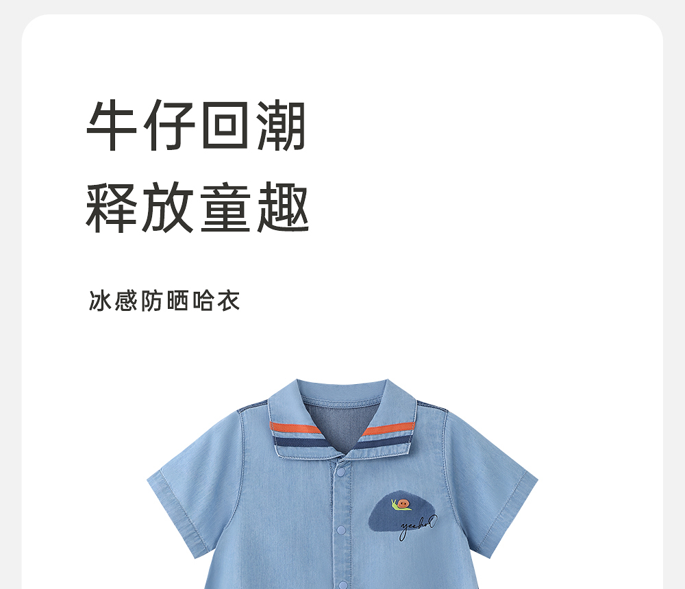 英氏婴儿衣服夏季凉感防晒男宝宝短袖连体衣牛仔哈衣YRHBJ2R016A