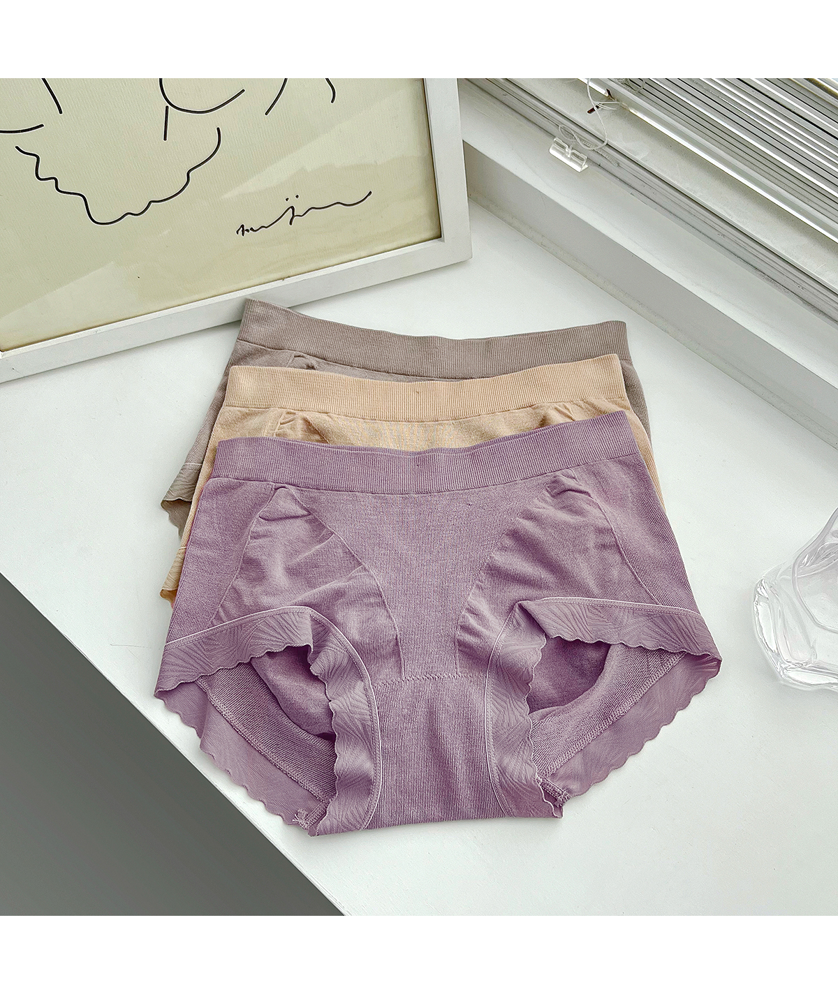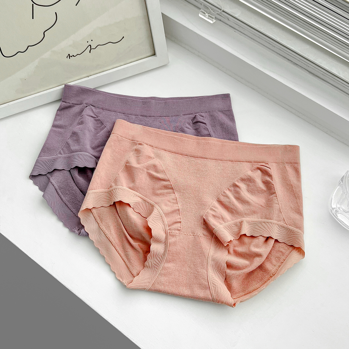 老米优品 / 舒适性真的是让人惊叹哦!质感敲棒!《莫代尔无缝花边包臀中腰女士内裤》弹力很大,穿起来不紧绷,没有束缚感,喜欢简约舒适型小内的别错过它!NK220829B