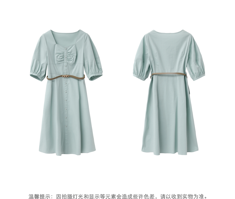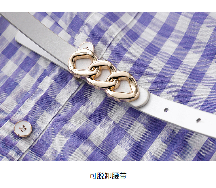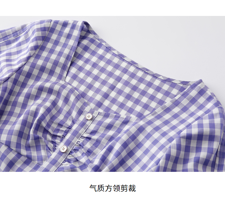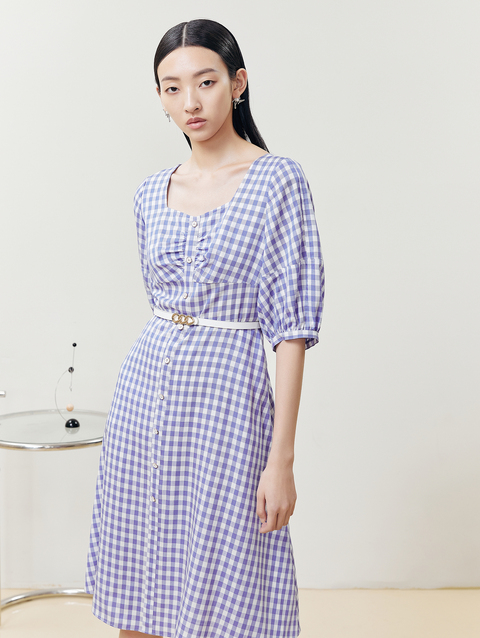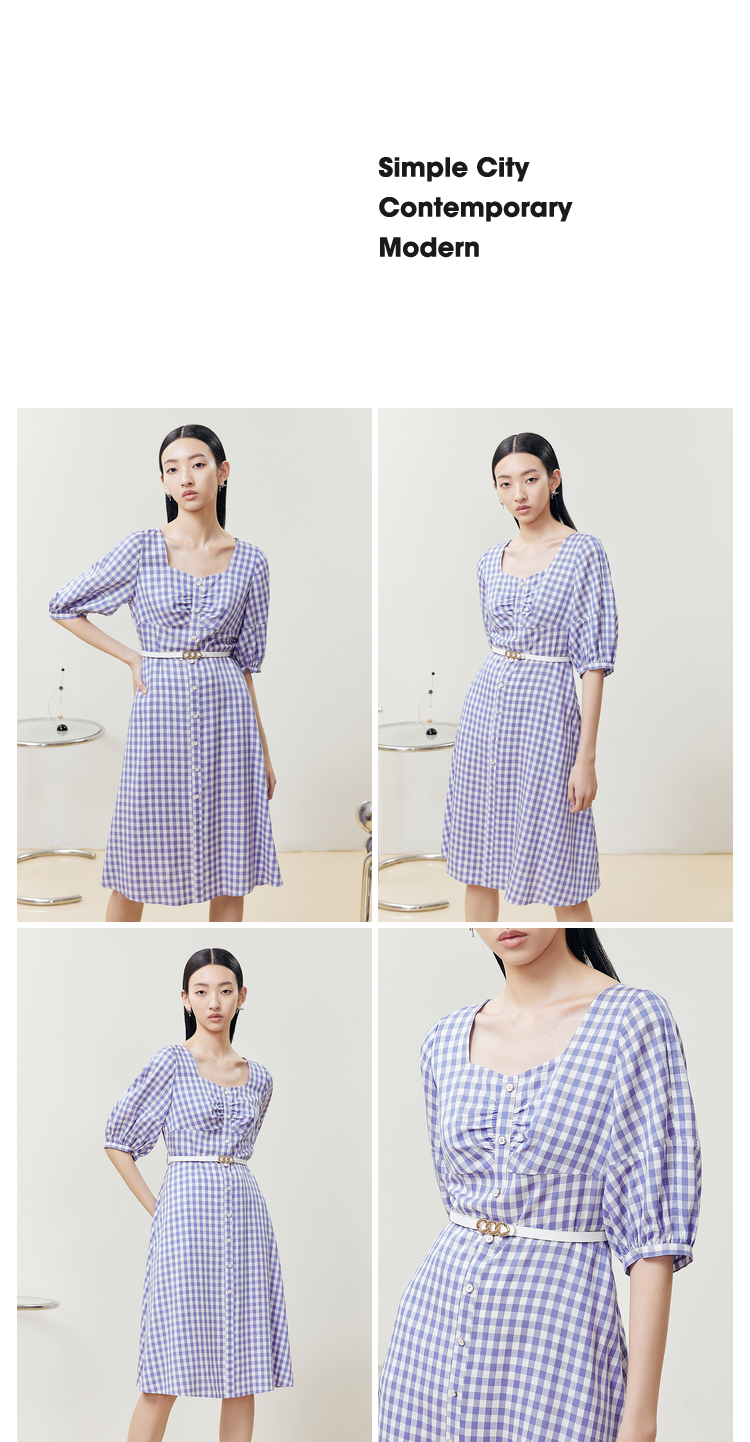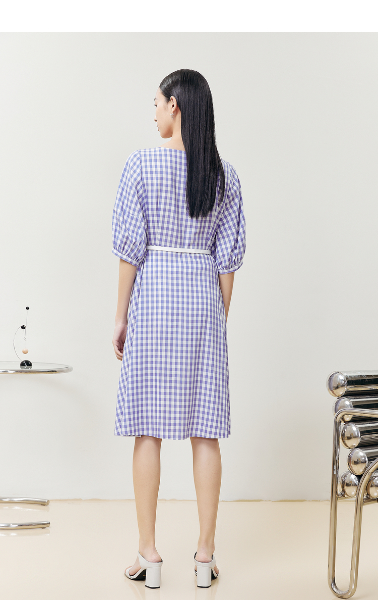 NEELLY纳俪商场同款复古方领格子连衣裙女单排扣系带A字裙中长款N22051Y01135