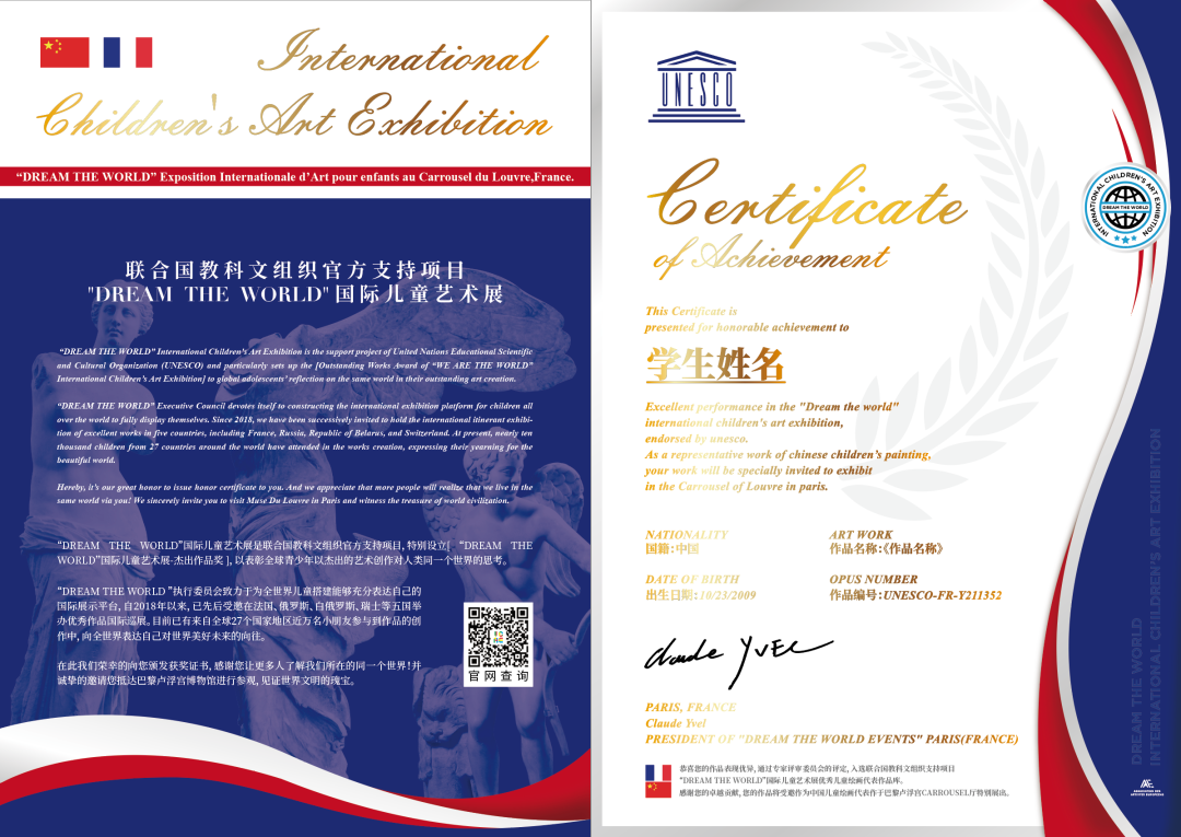 DREAM THE WORLD“共筑童梦”国际儿童艺术展 认证费