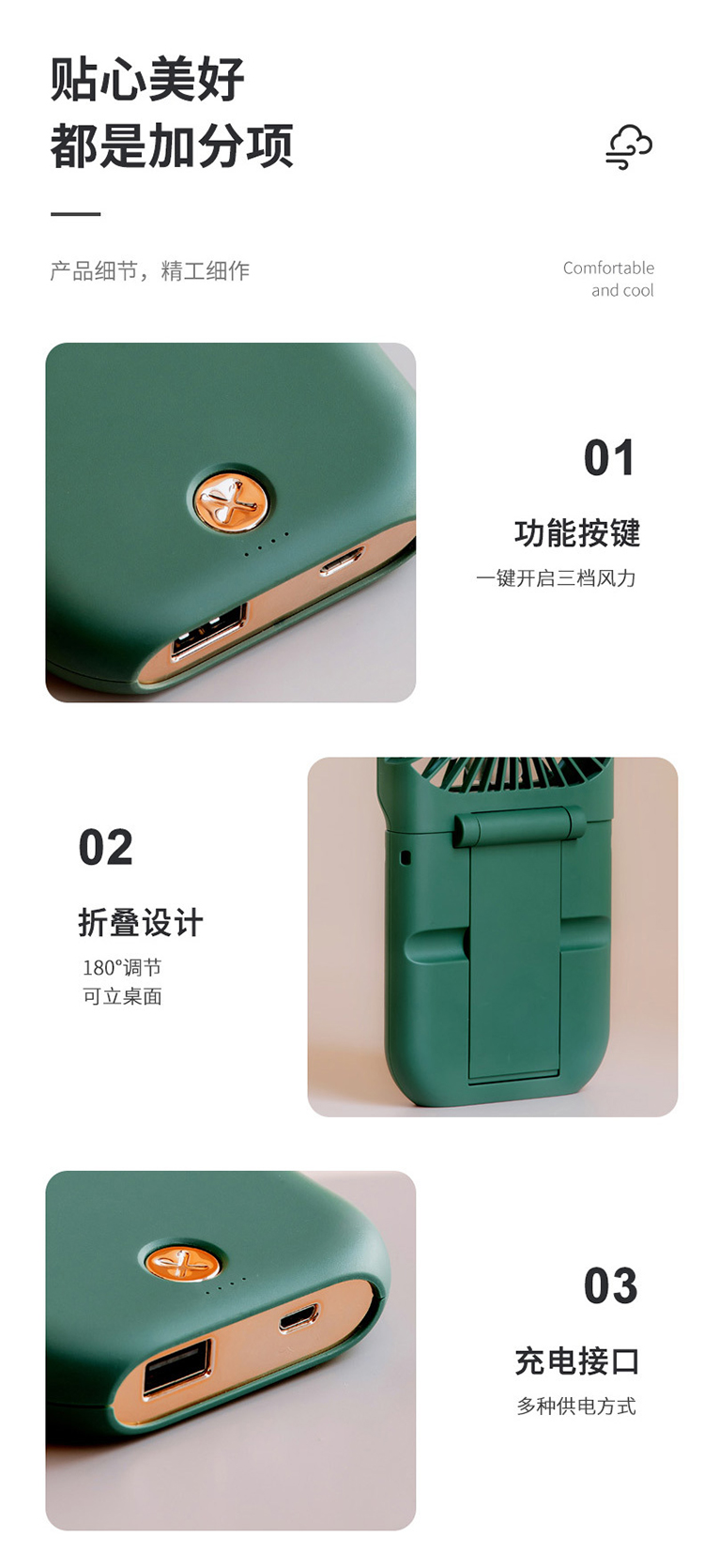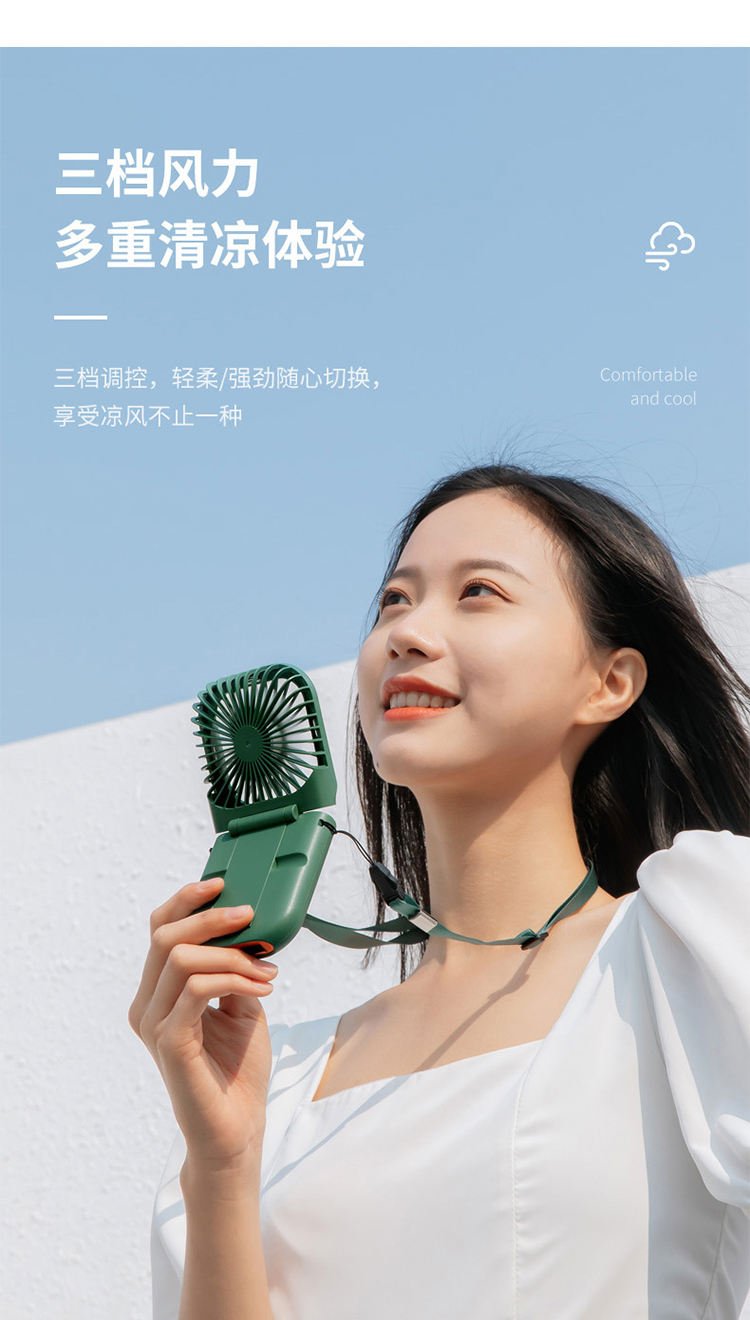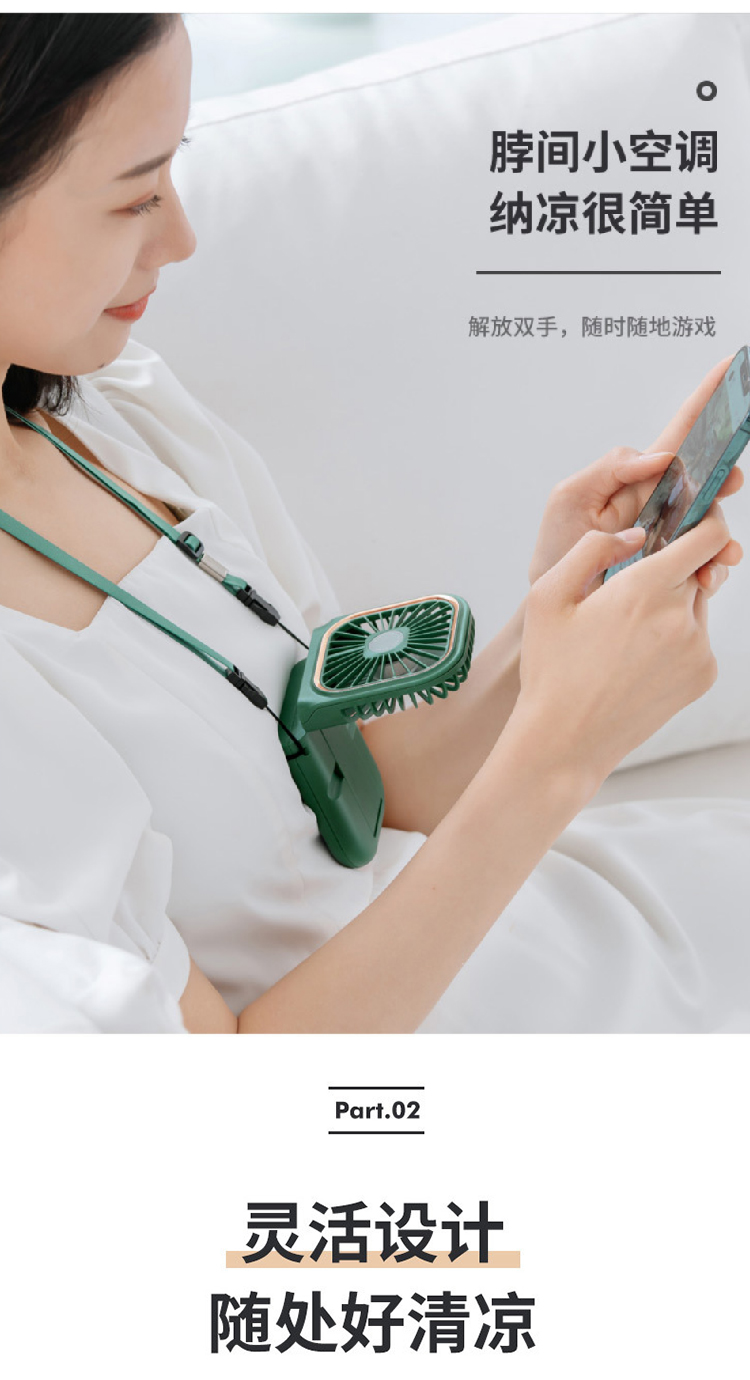 【折叠挂脖风扇+充电宝】新款手持迷你口袋风扇 USB迷你折叠桌面懒人挂脖风扇