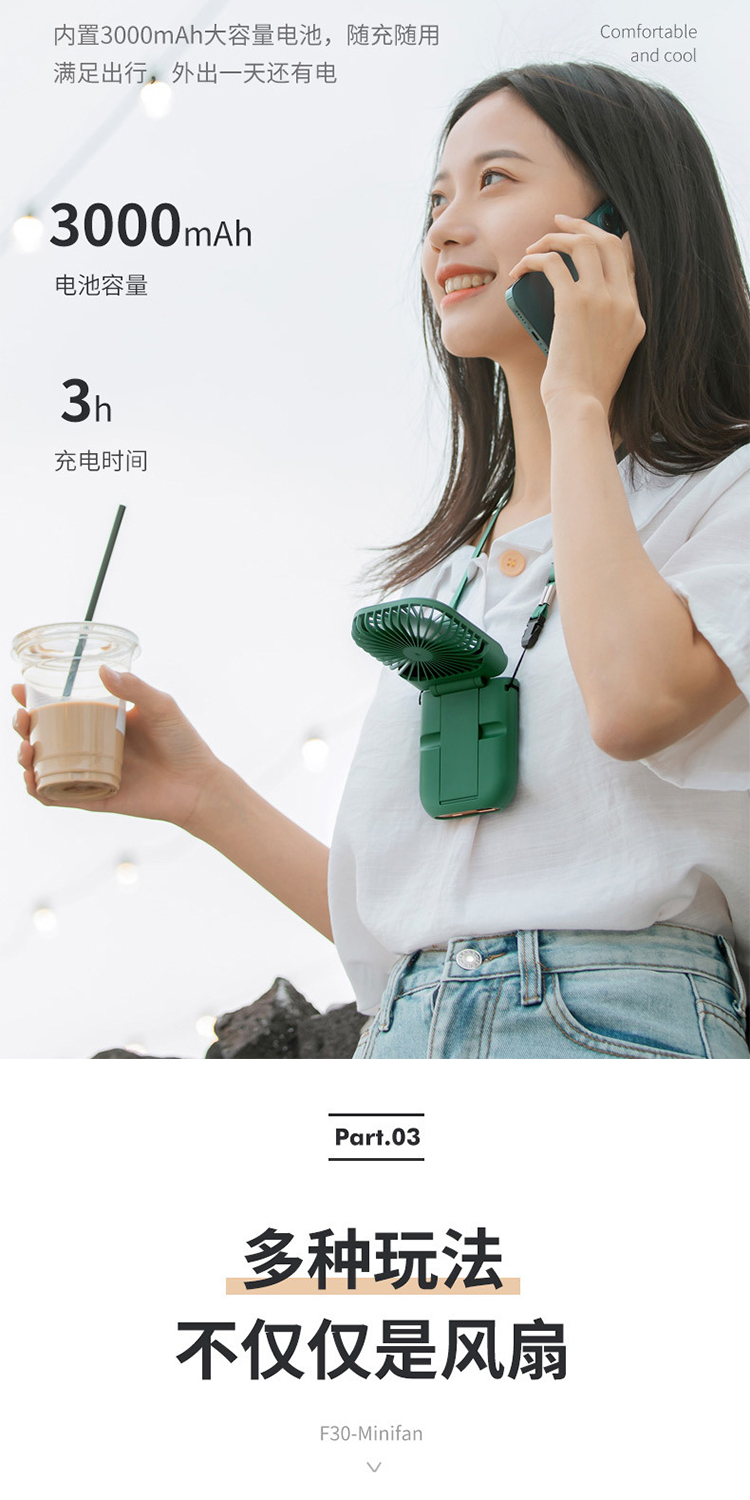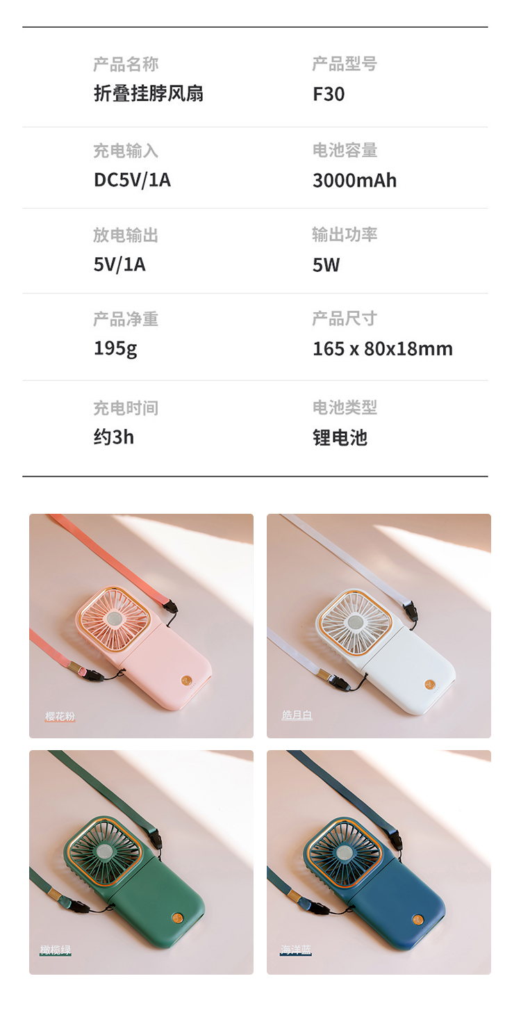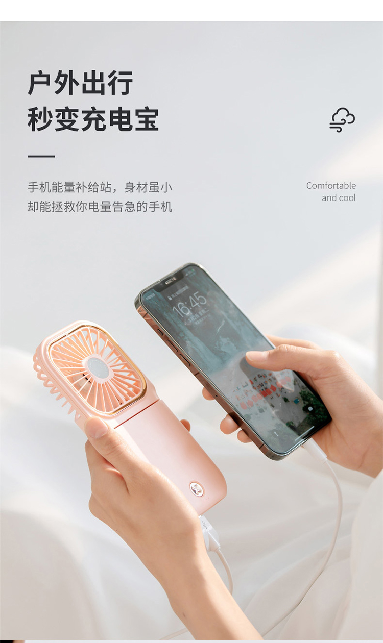 【折叠挂脖风扇+充电宝】新款手持迷你口袋风扇 USB迷你折叠桌面懒人挂脖风扇