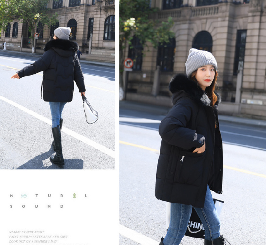 【女士棉服】大毛领羽绒棉服潮女秋冬加厚韩版宽松中长款棉衣外套
