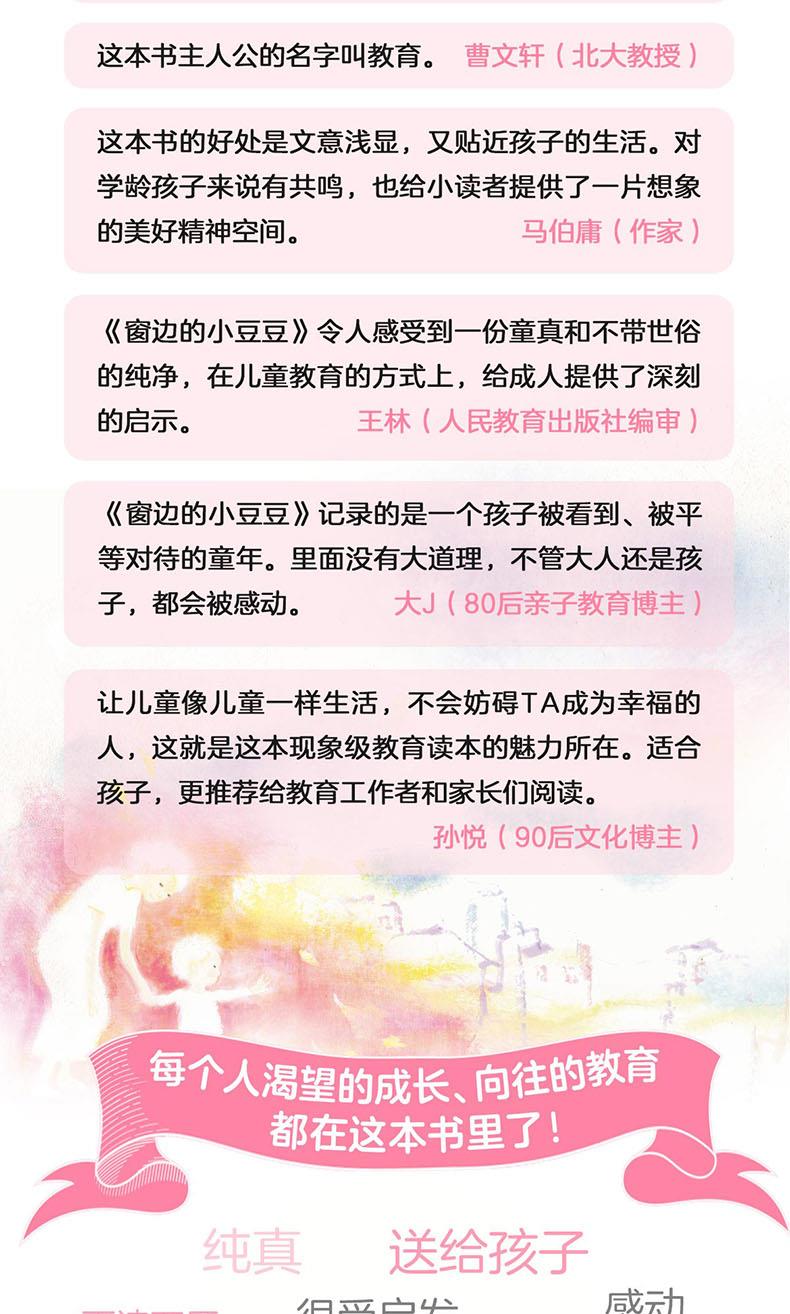 世界上可怕的事情,莫过于有眼睛却发现不了美,有耳朵却不会欣赏音乐,有心灵却无法理解什么是真。不会感动,也不会充满激情。《窗边的小豆豆》不仅带给千万读者无数的笑声和感动,而且为现代教育的发展注入了新的活力,成为全世界极有影响的作品之一。