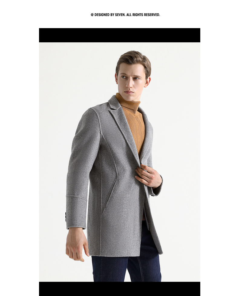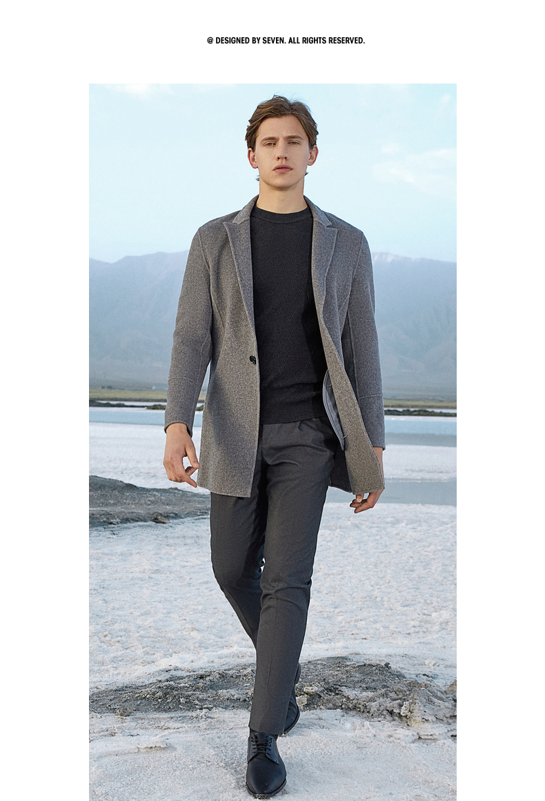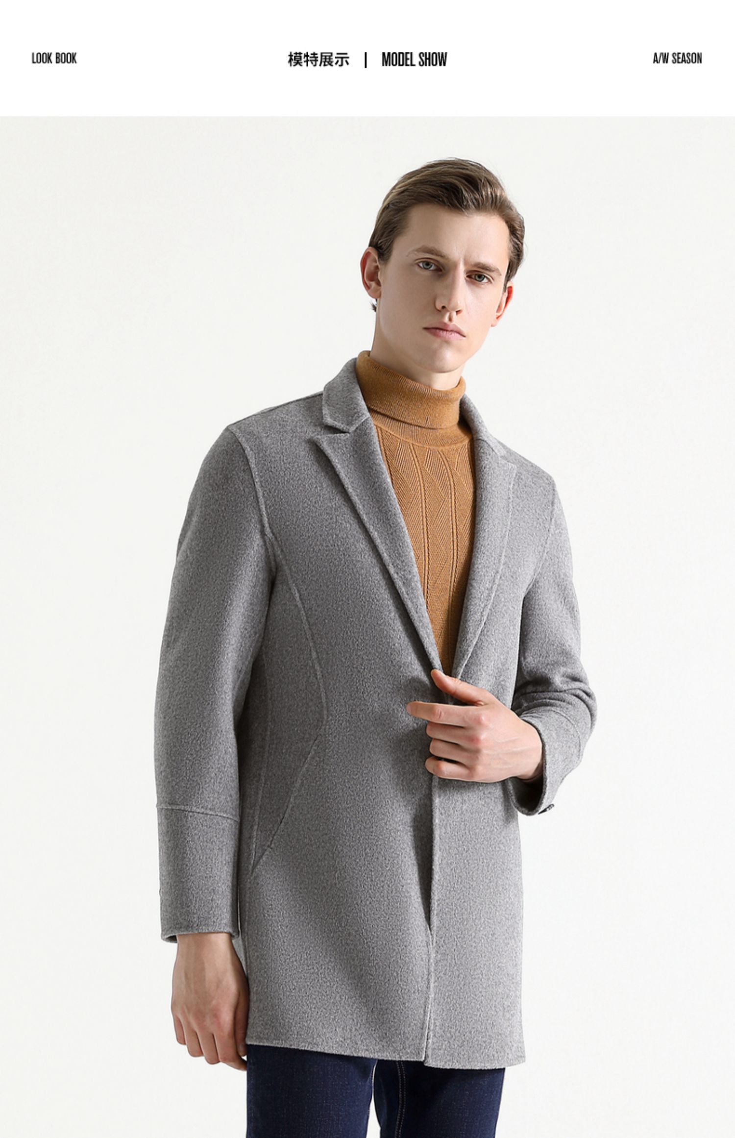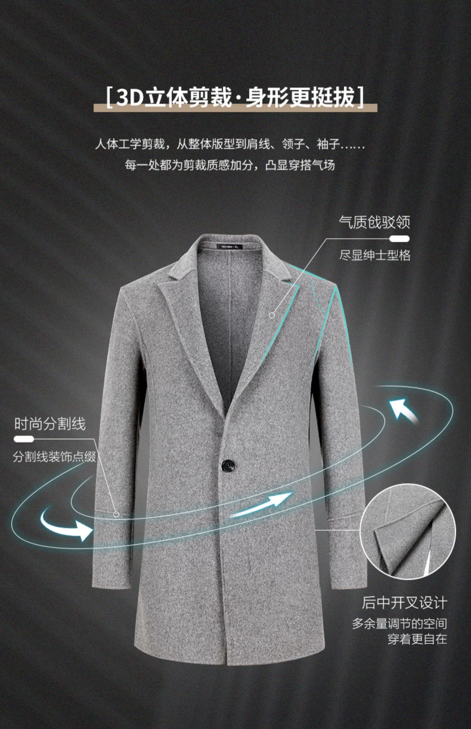 柒牌男装毛呢大衣冬季新款男士中长款加厚外套商务休闲修身保暖 119D70060