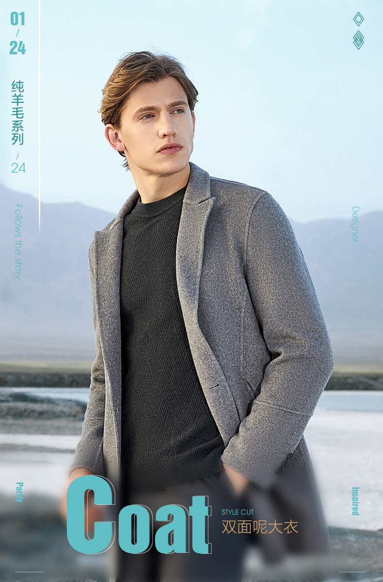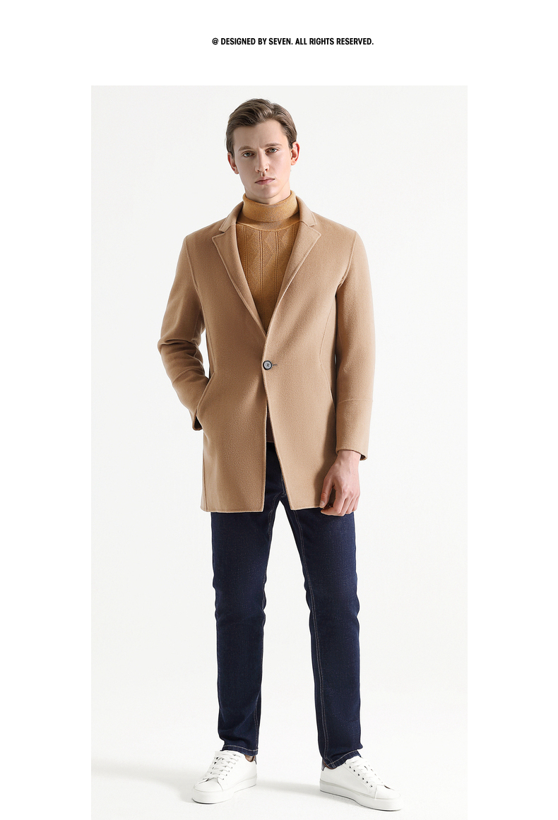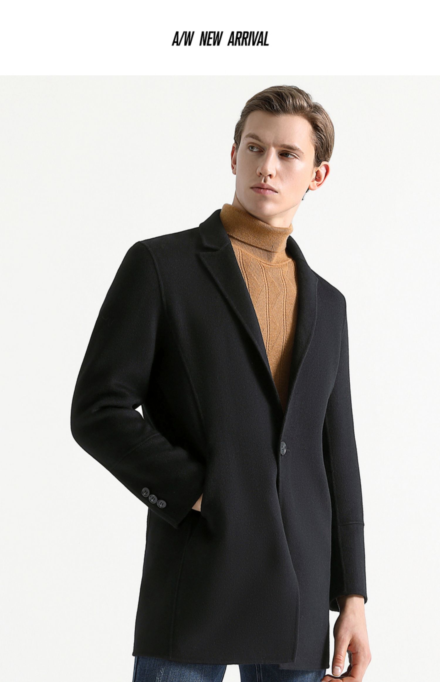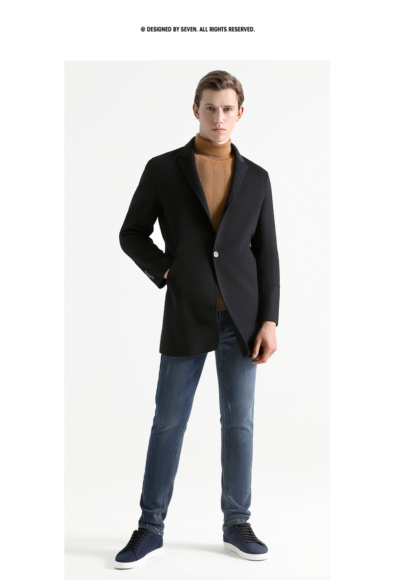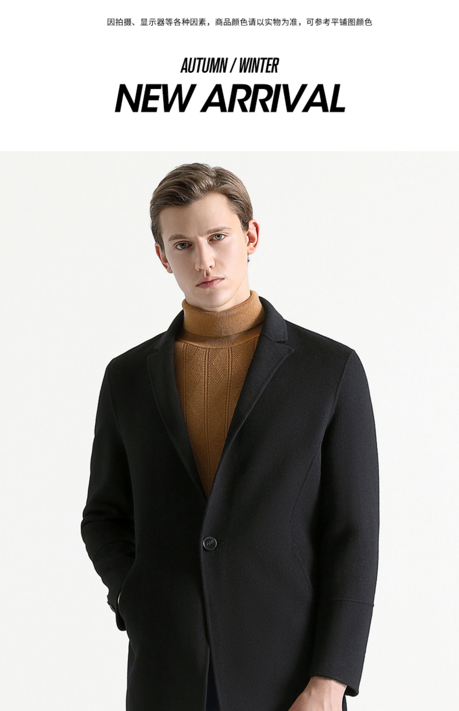 柒牌男装毛呢大衣冬季新款男士中长款加厚外套商务休闲修身保暖 119D70060