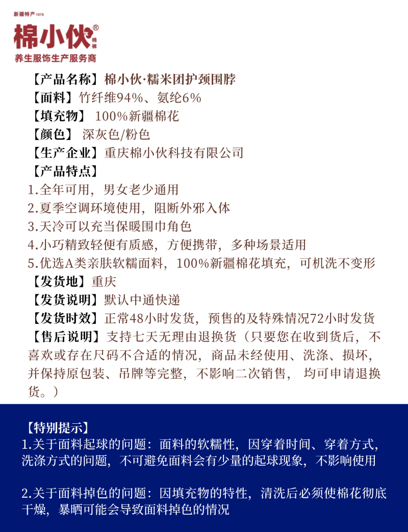 棉小伙【糯米团护颈围脖】【九九姜芯片】 版型全新升级 天然棉花填充 可机洗不变形
