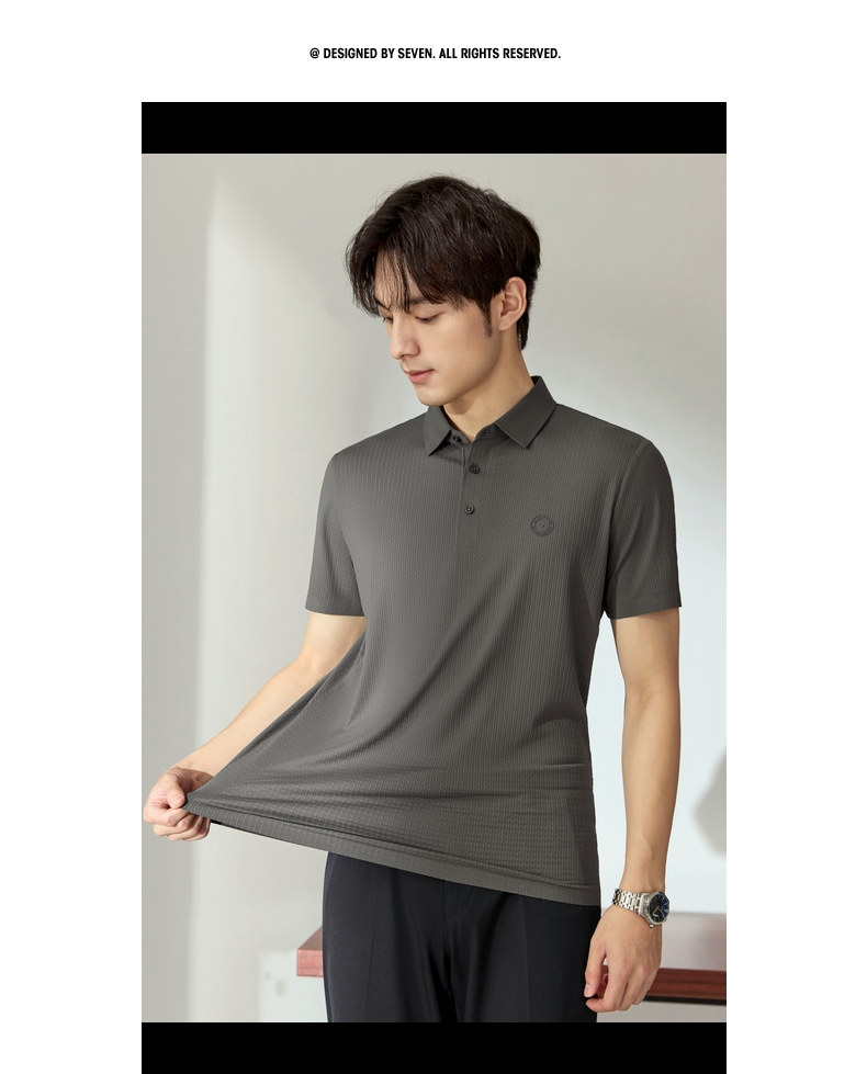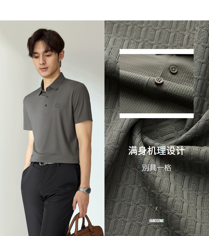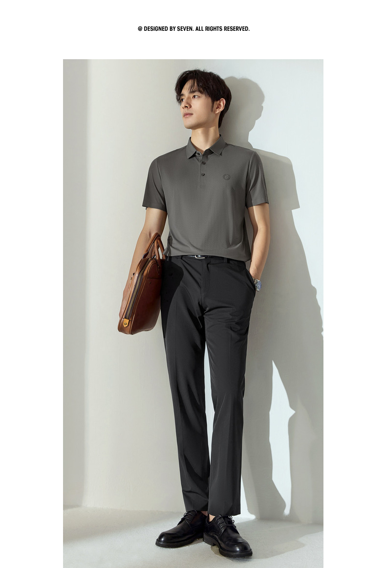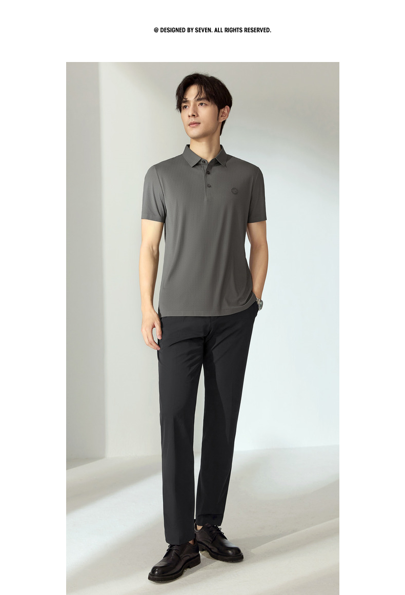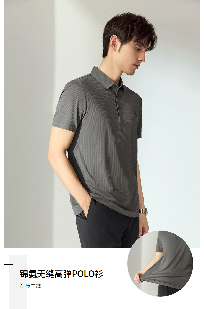 【无缝工艺/高弹/满身肌理】柒牌格纹短袖Polo男夏季新品休闲上衣128T71040