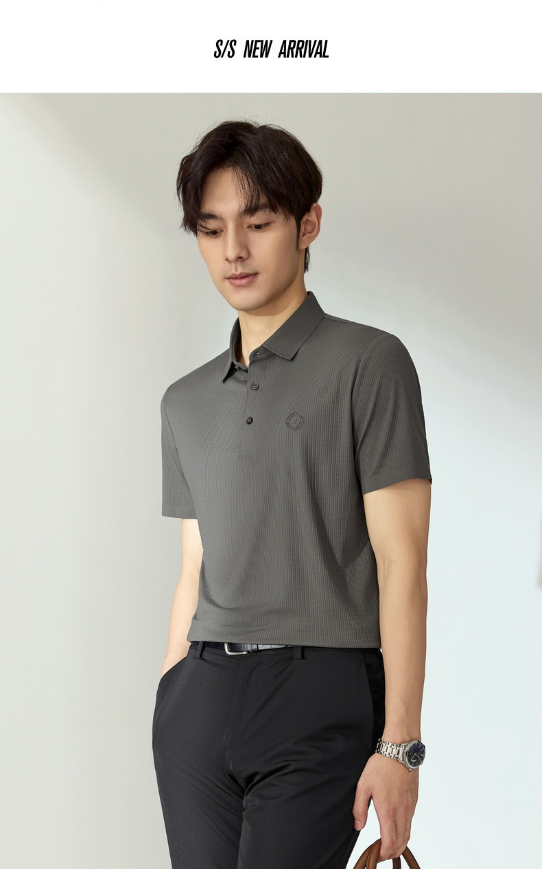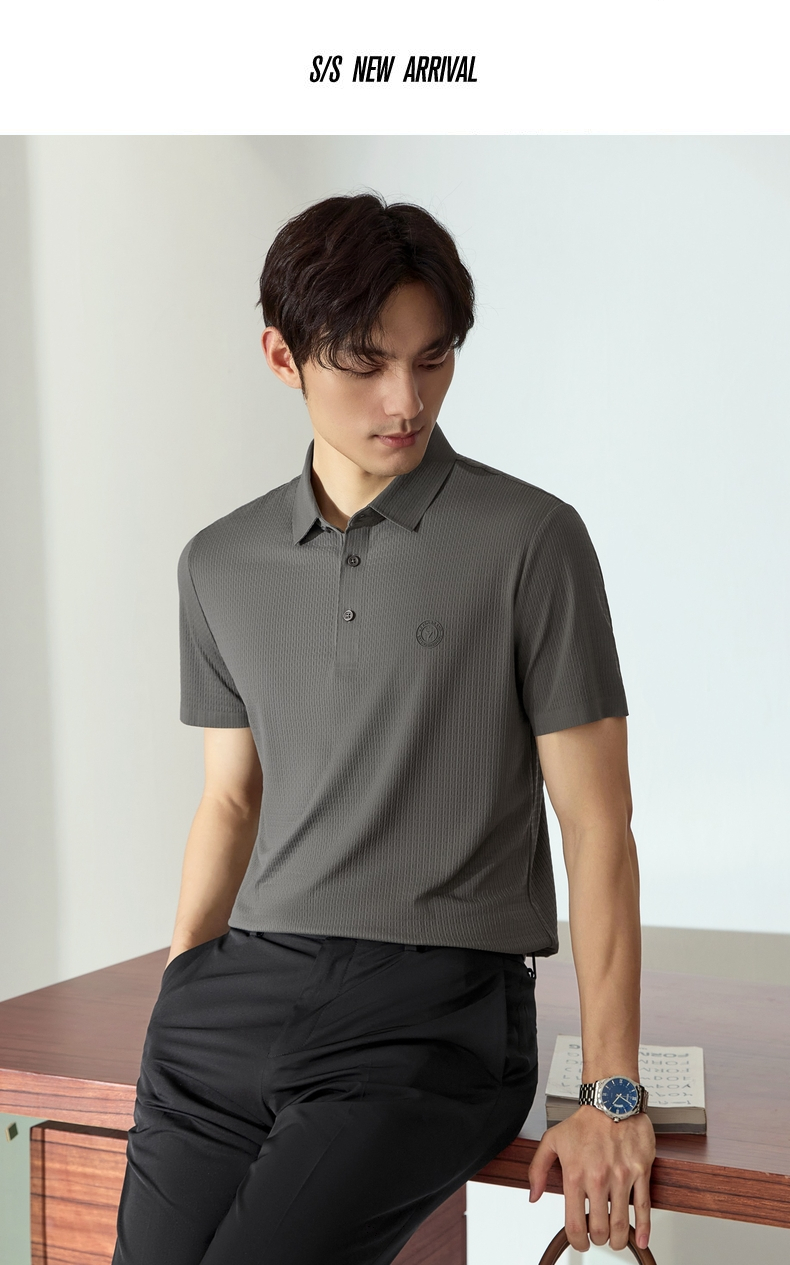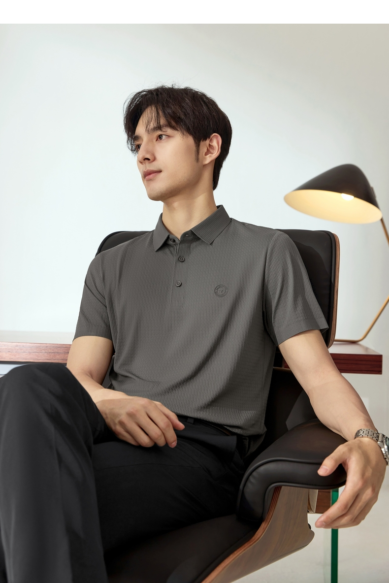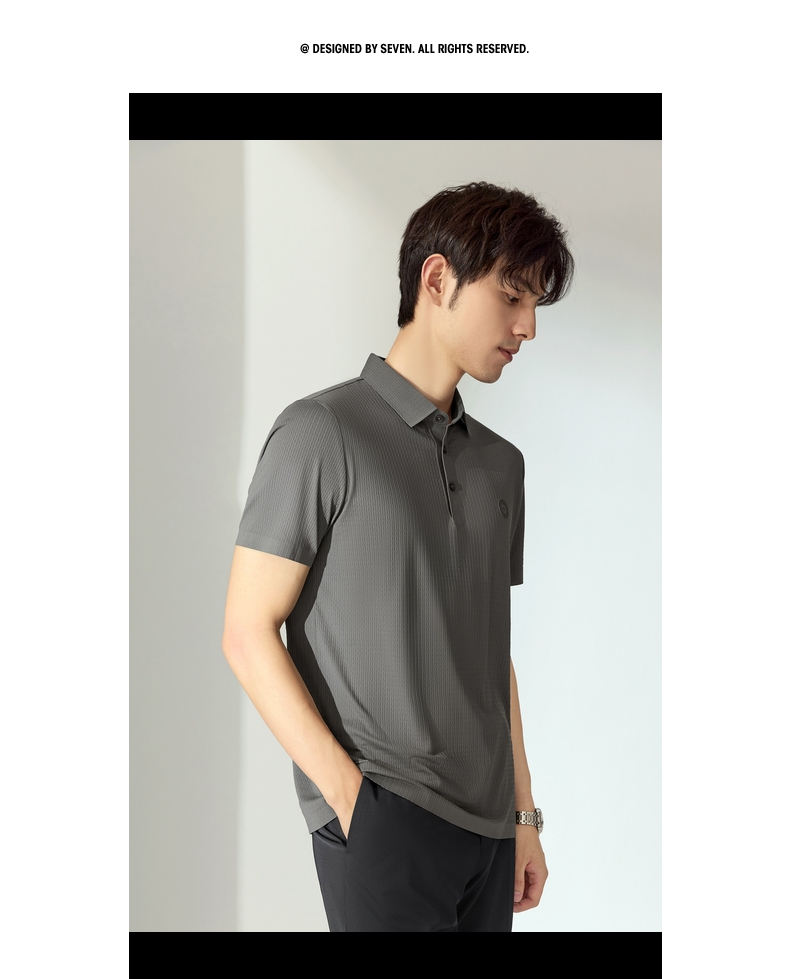【无缝工艺/高弹/满身肌理】柒牌格纹短袖Polo男夏季新品休闲上衣128T71040
