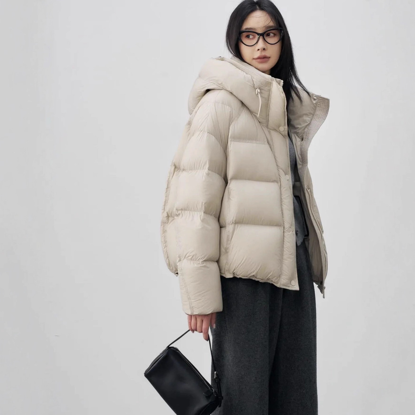 【90白鹅绒 泡芙感面包服】时尚宽松 连帽羽绒服